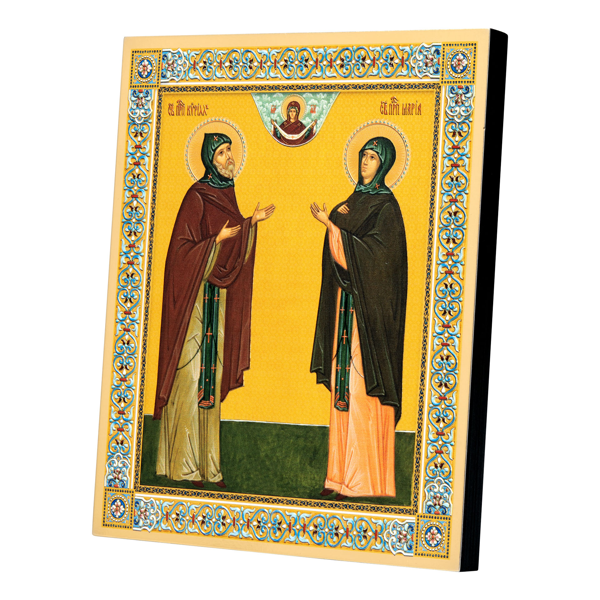 Икона на доске 18х24 золоченое покрытие, объёмная печать, лак Кирилл и Мария 2,
