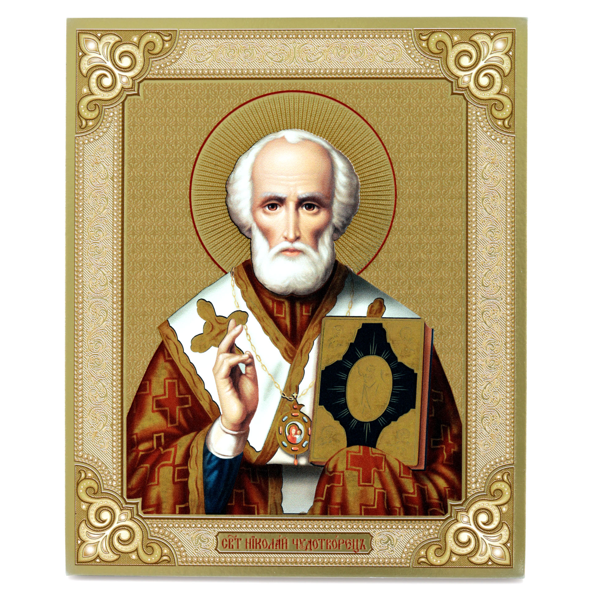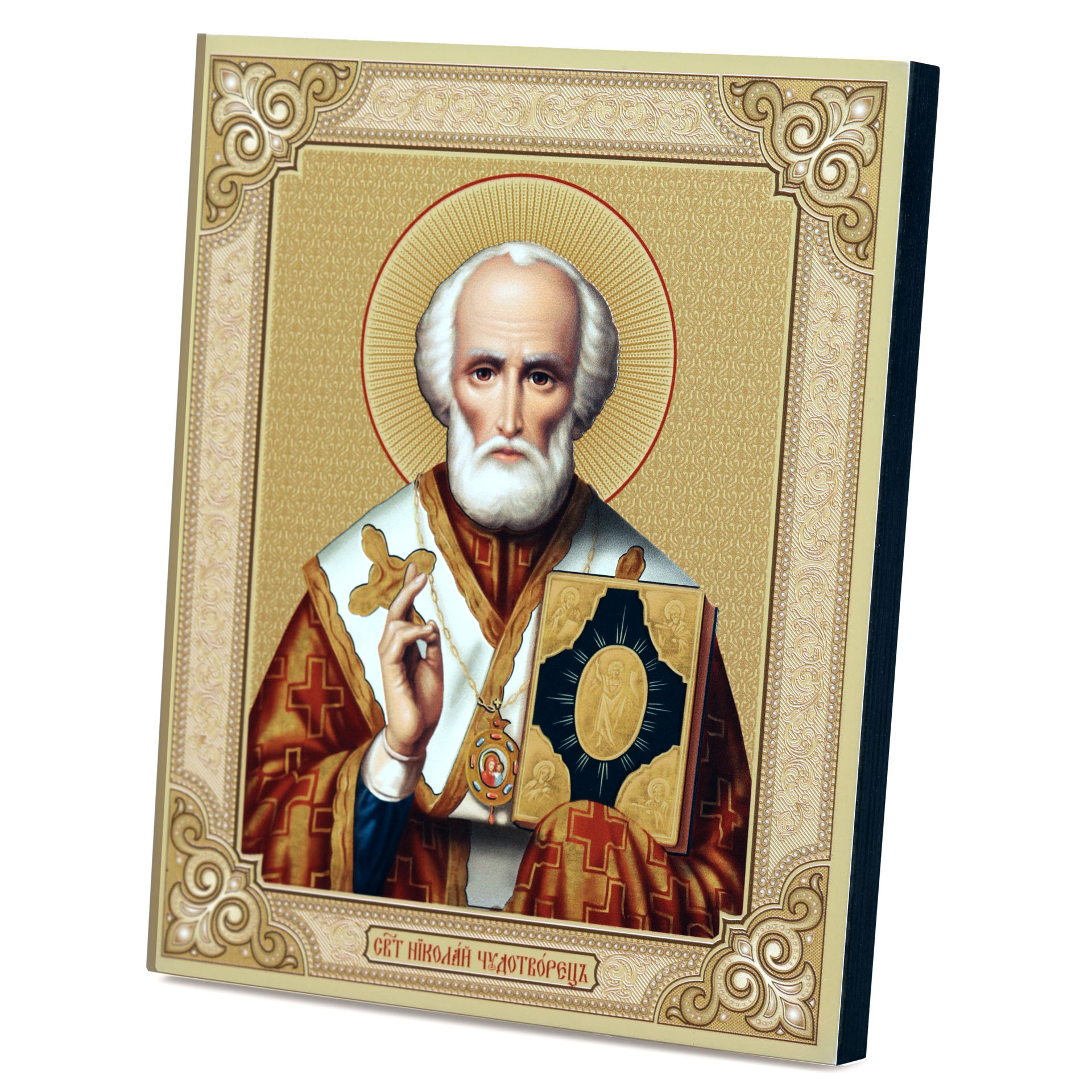 Икона на доске 18х24 золоченое покрытие, объёмная печать, лак Николай Чудотворец 3,