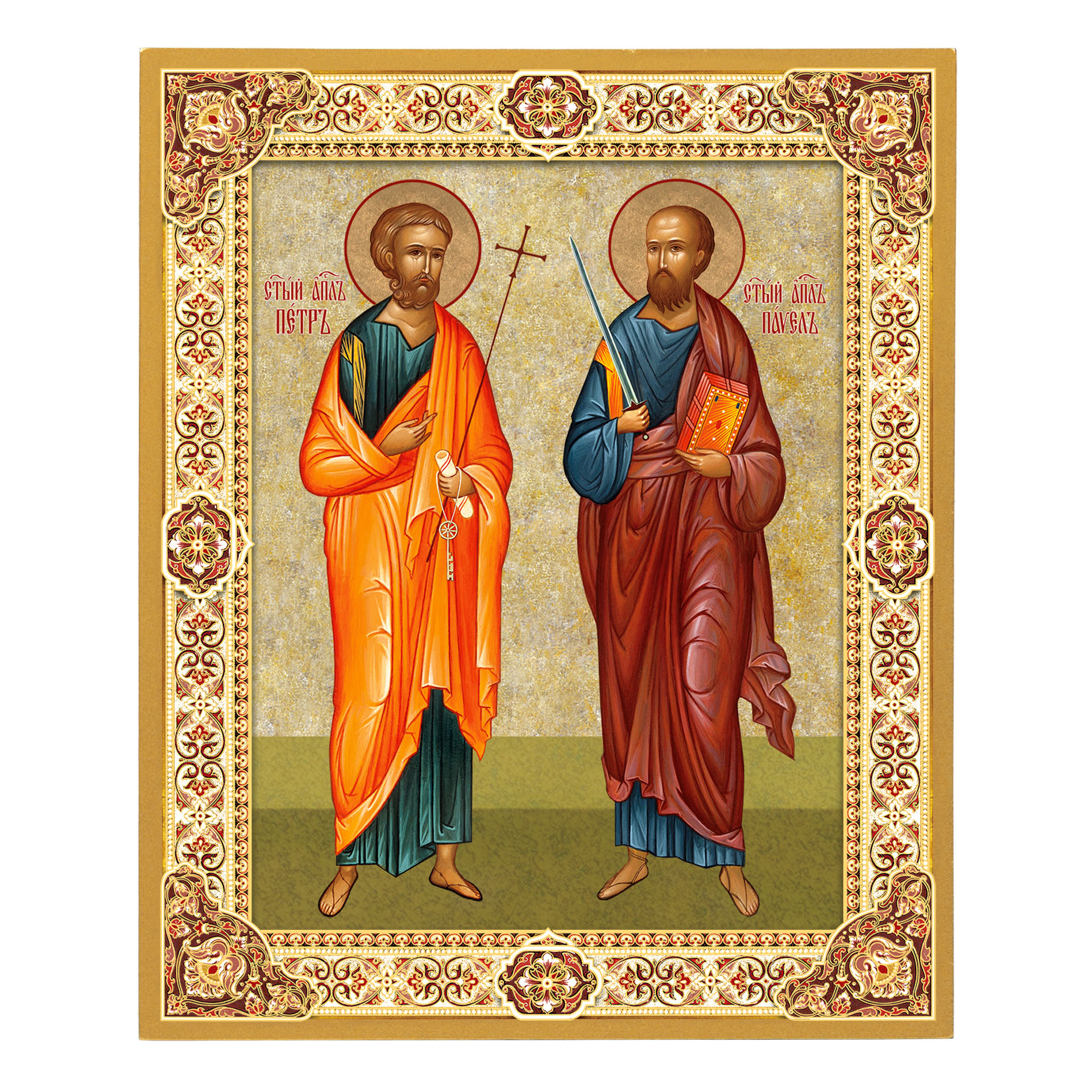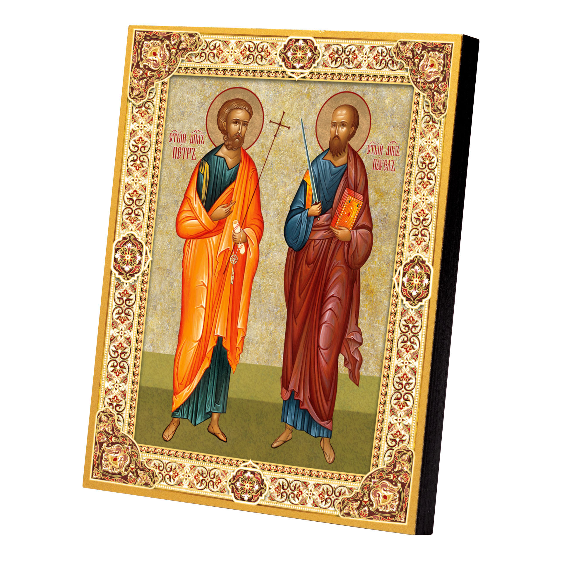 Икона на доске 18х24 золоченое покрытие, объёмная печать, лак Петр Павел,