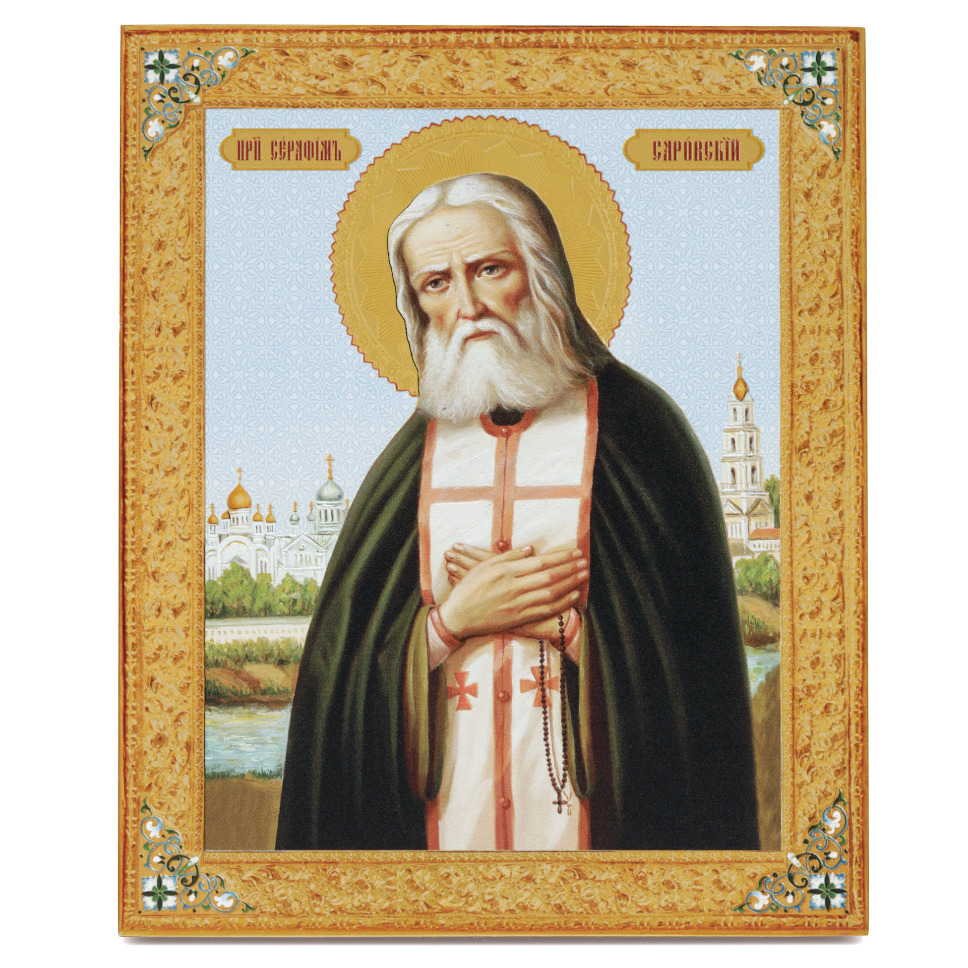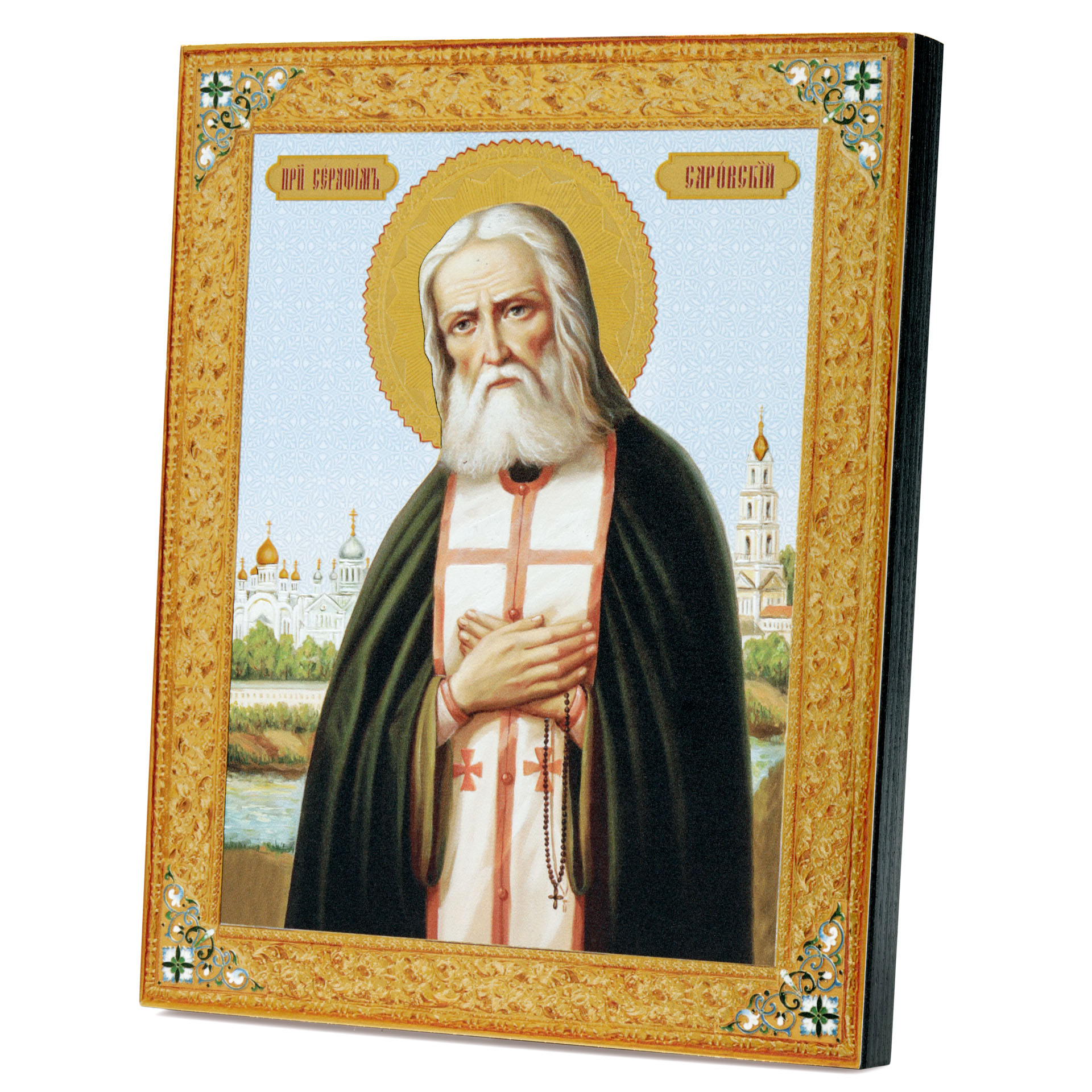 Икона на доске 18х24 золоченое покрытие, объёмная печать, лак Серафим Саровский,