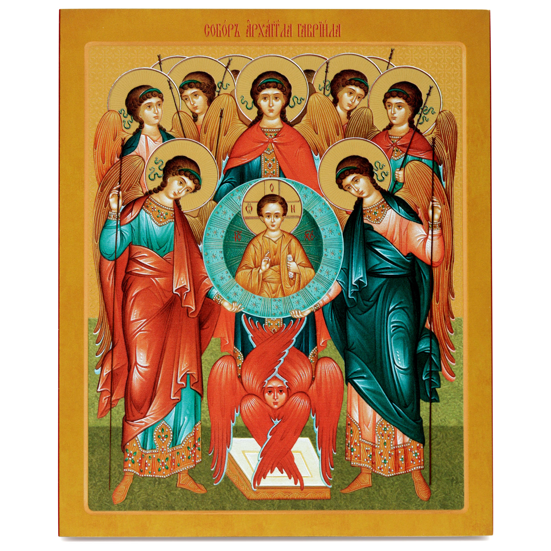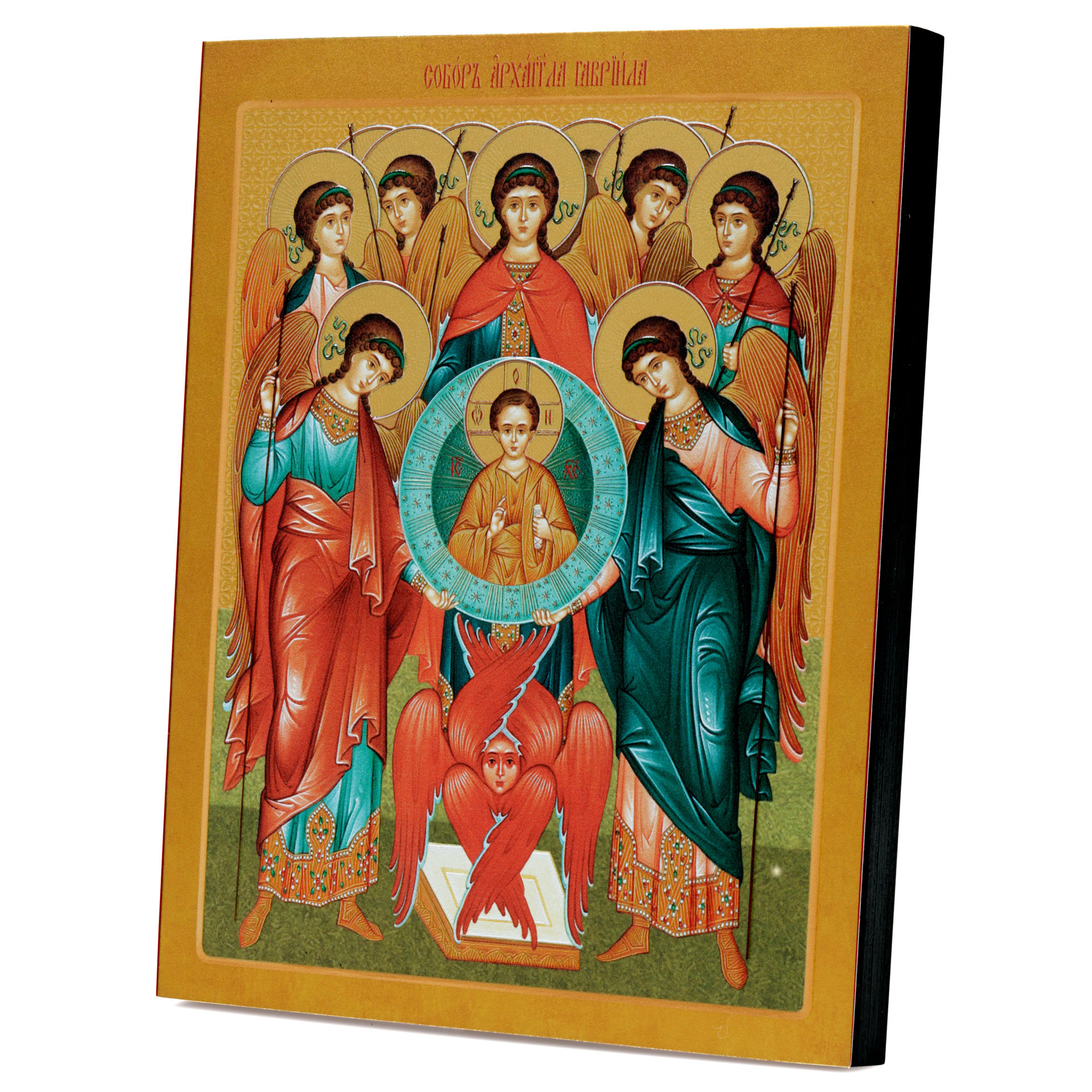 Икона на доске 18х24 золоченое покрытие, объёмная печать, лак Собор Архистратига Гавриила,