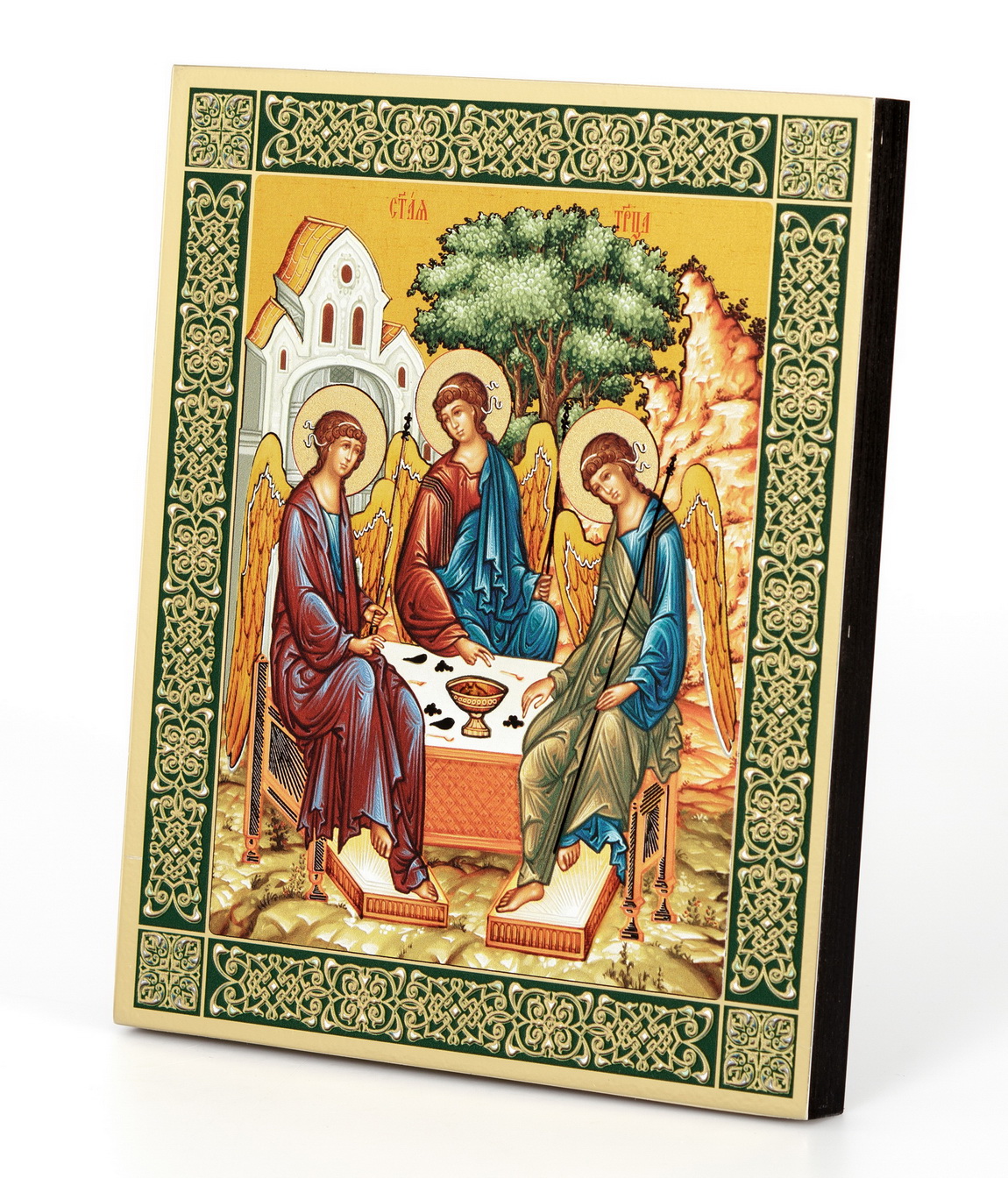 Икона на доске 18х24 золоченое покрытие, объёмная печать, лак Троица 3