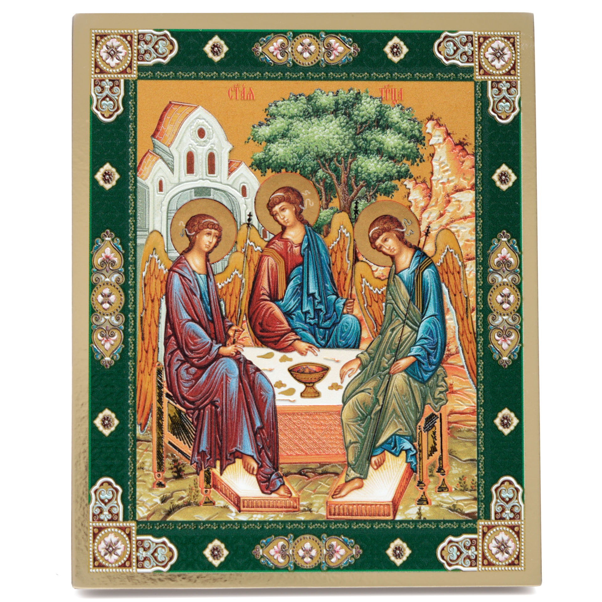 Икона на доске 18х24 золоченое покрытие, объёмная печать, лак Троица,