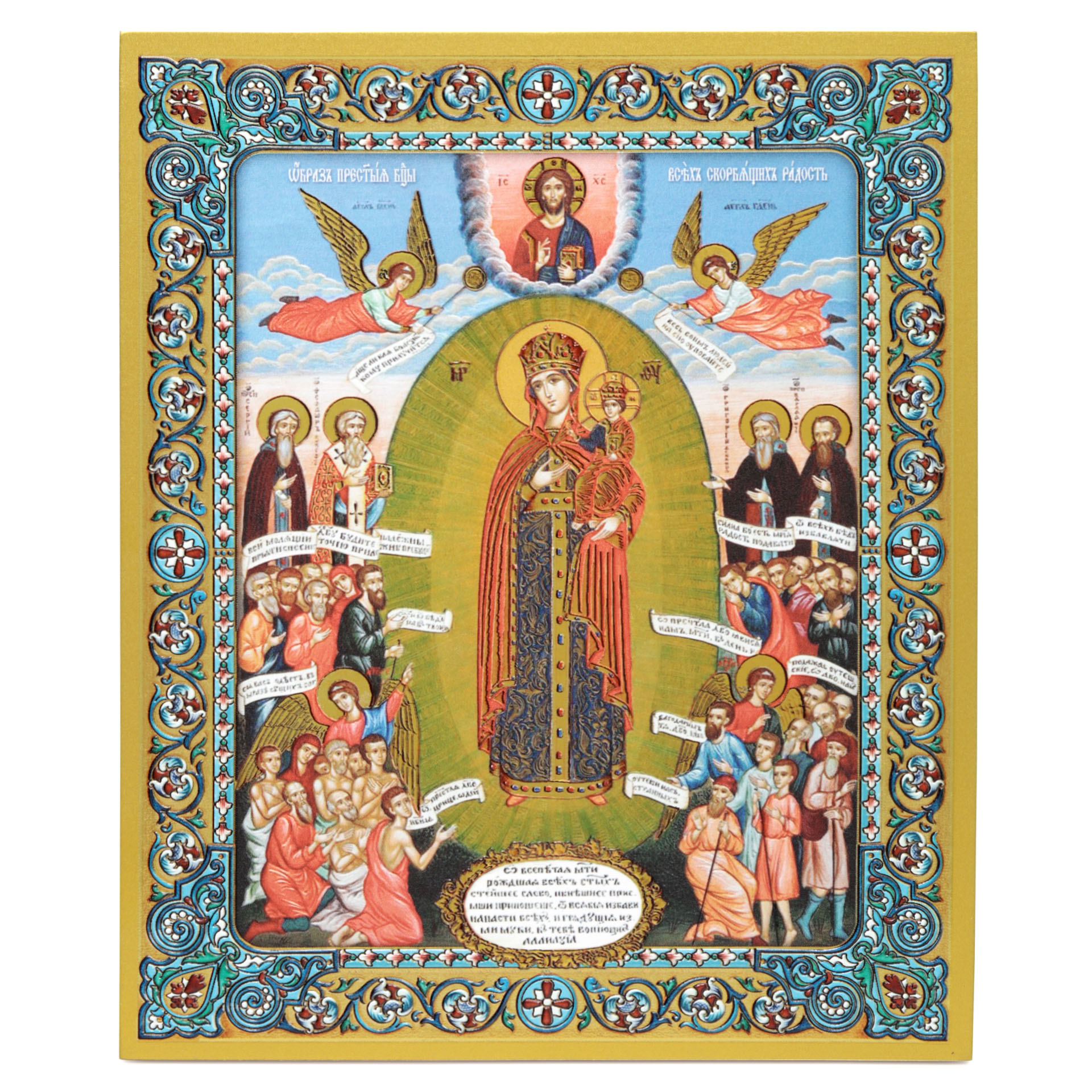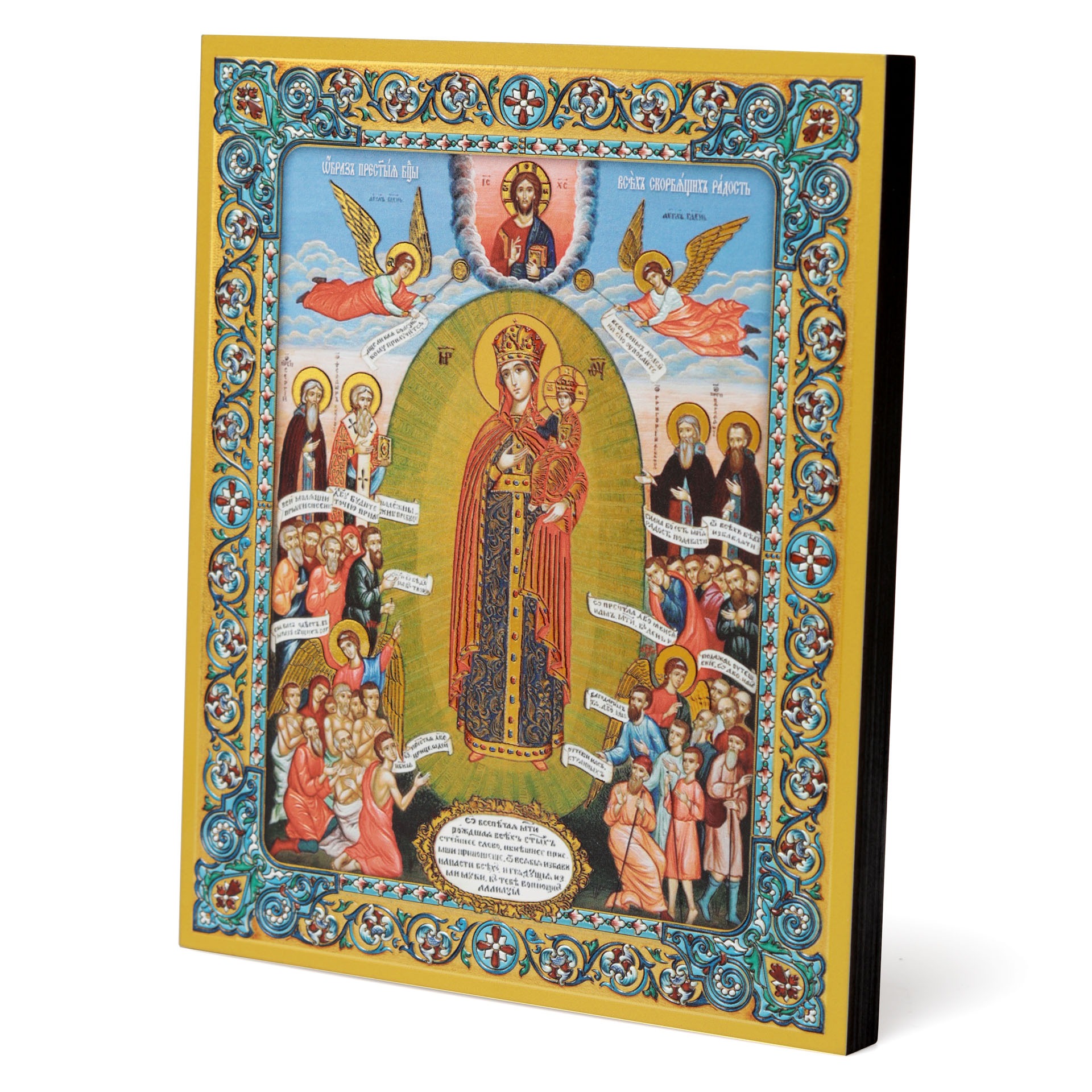 Икона на доске 18х24 золоченое покрытие, объёмная печать, лак Всех скорбящих Радость,