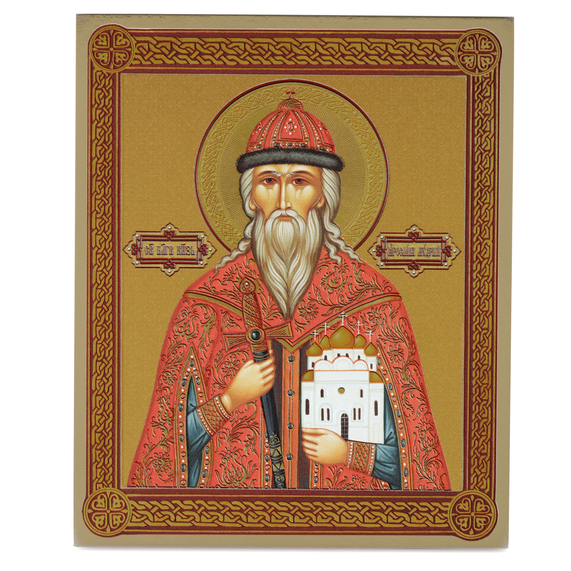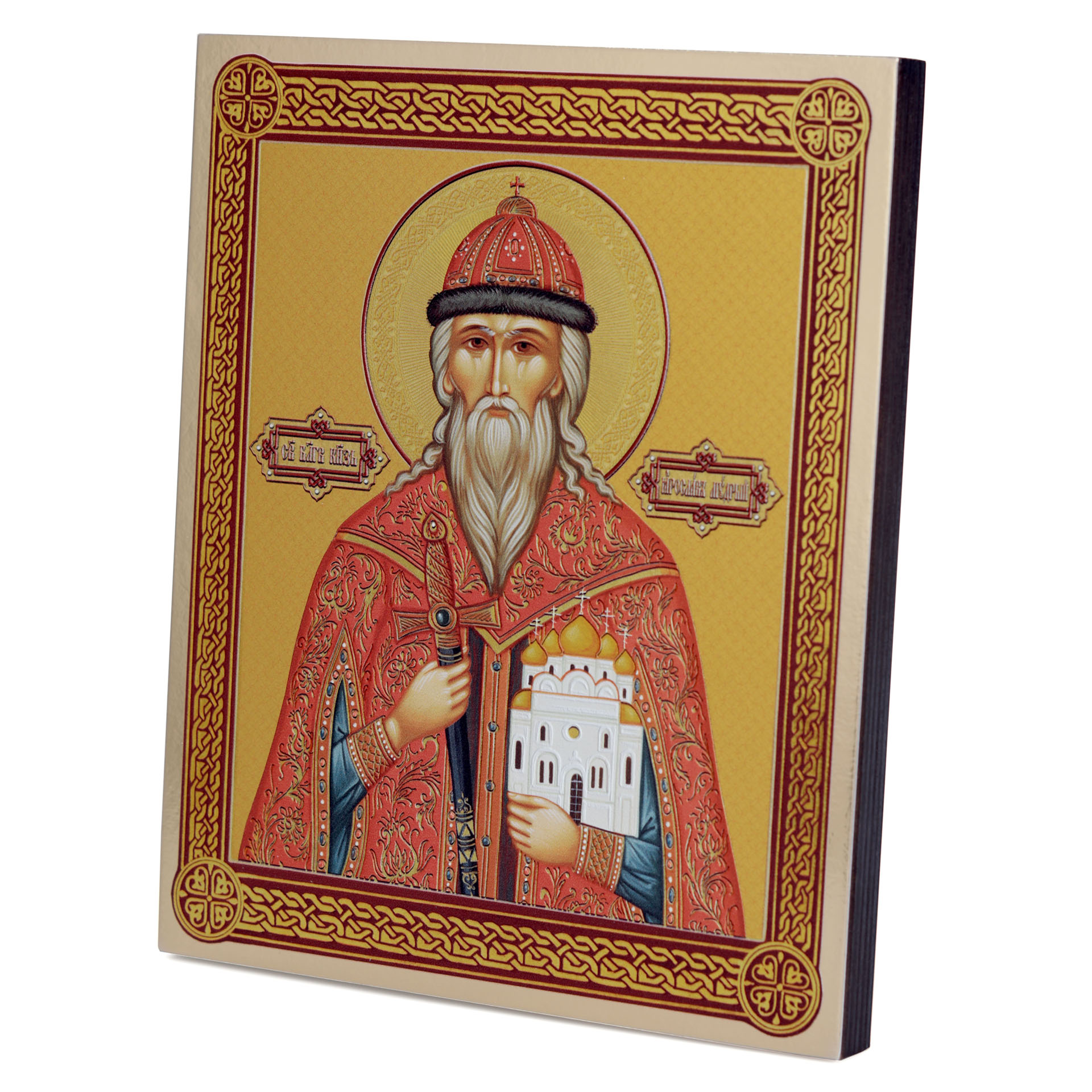 Икона на доске 18х24 золоченое покрытие, объёмная печать, лак Ярослав Мудрый,