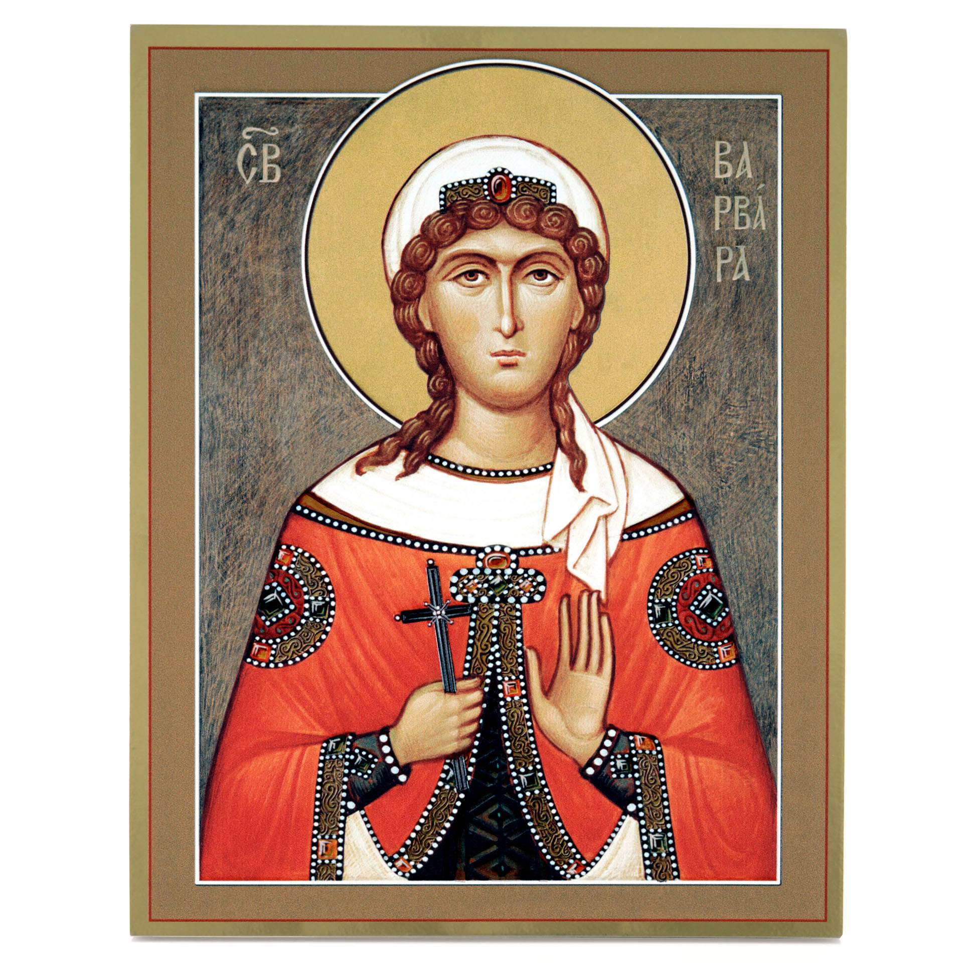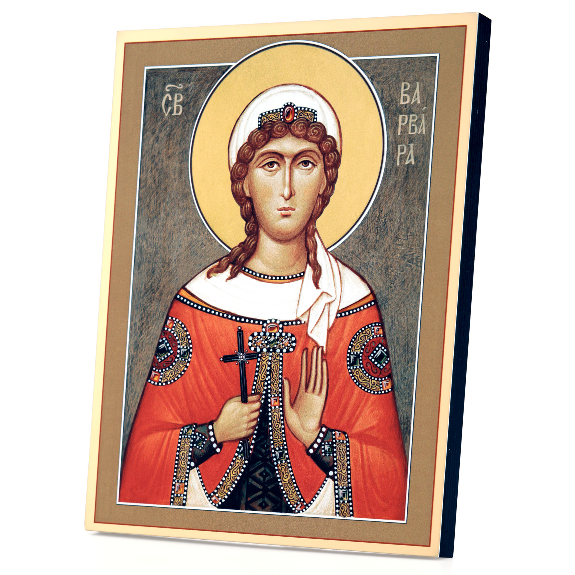 Икона на доске 21х27 золоченое покрытие, объёмная печать, лак Варвара,