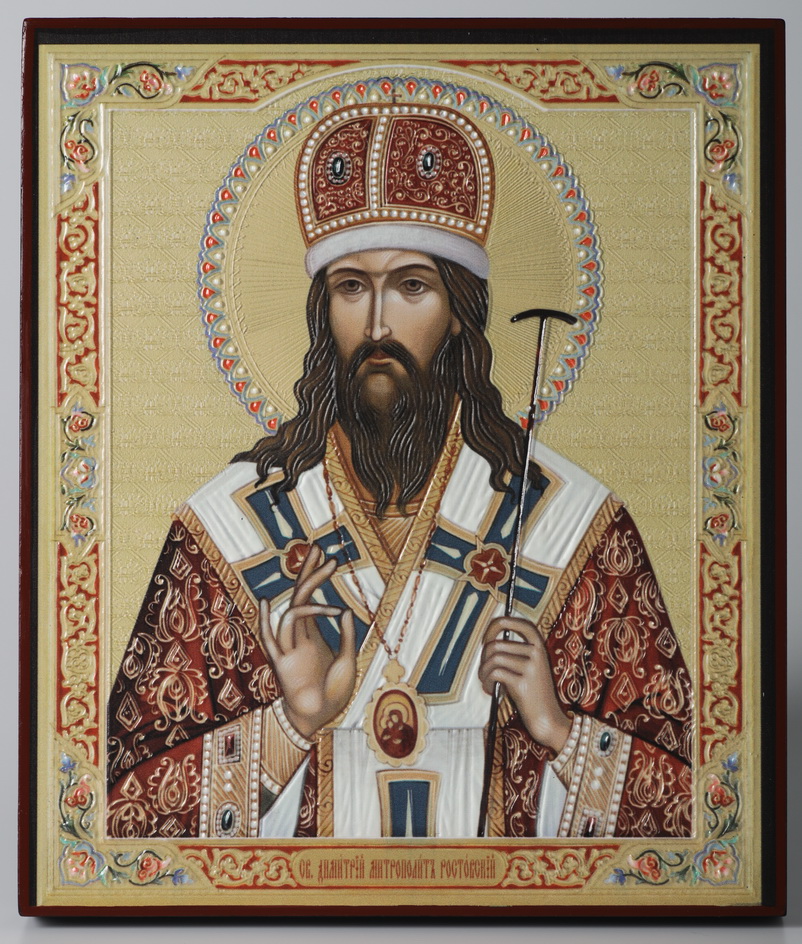 Икона на доске 22х26 объёмная печать, лак Димитрий Ростовский