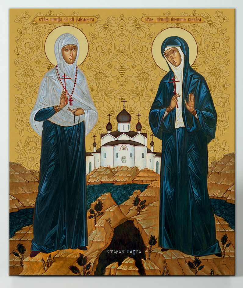 Икона на доске 22х26 объёмная печать, лак Елисавета и Варвара