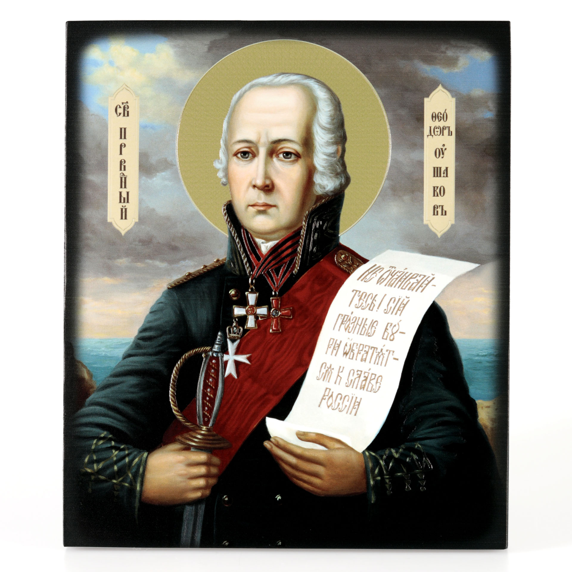 Икона на доске 22х26 объёмная печать, лак Феодор Ушаков,