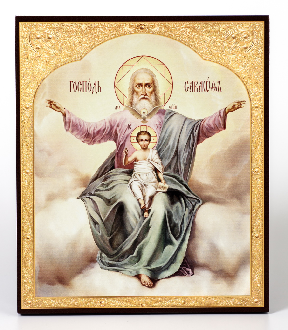 Икона на доске 22х26 объёмная печать, лак Господь Саваоф,