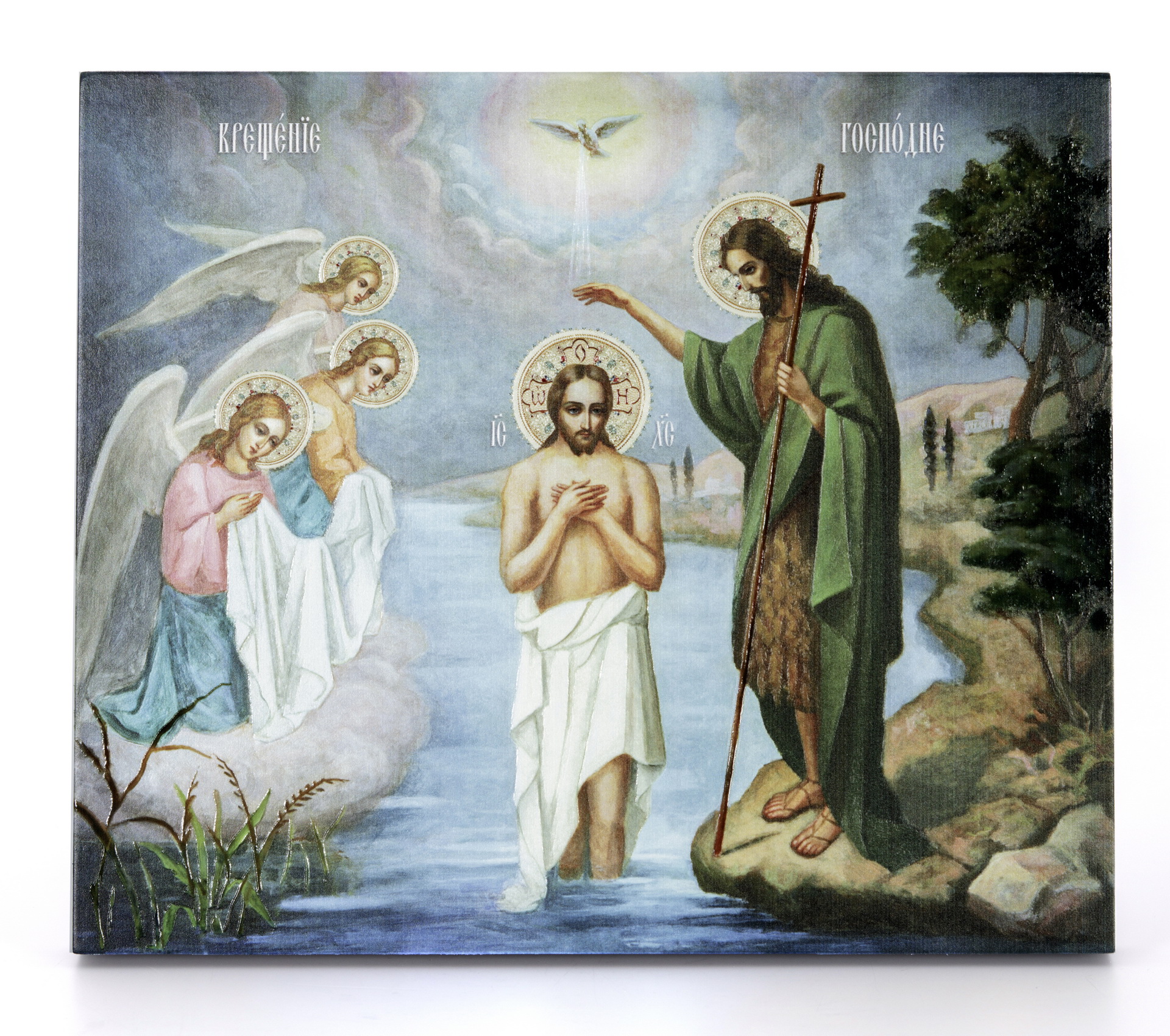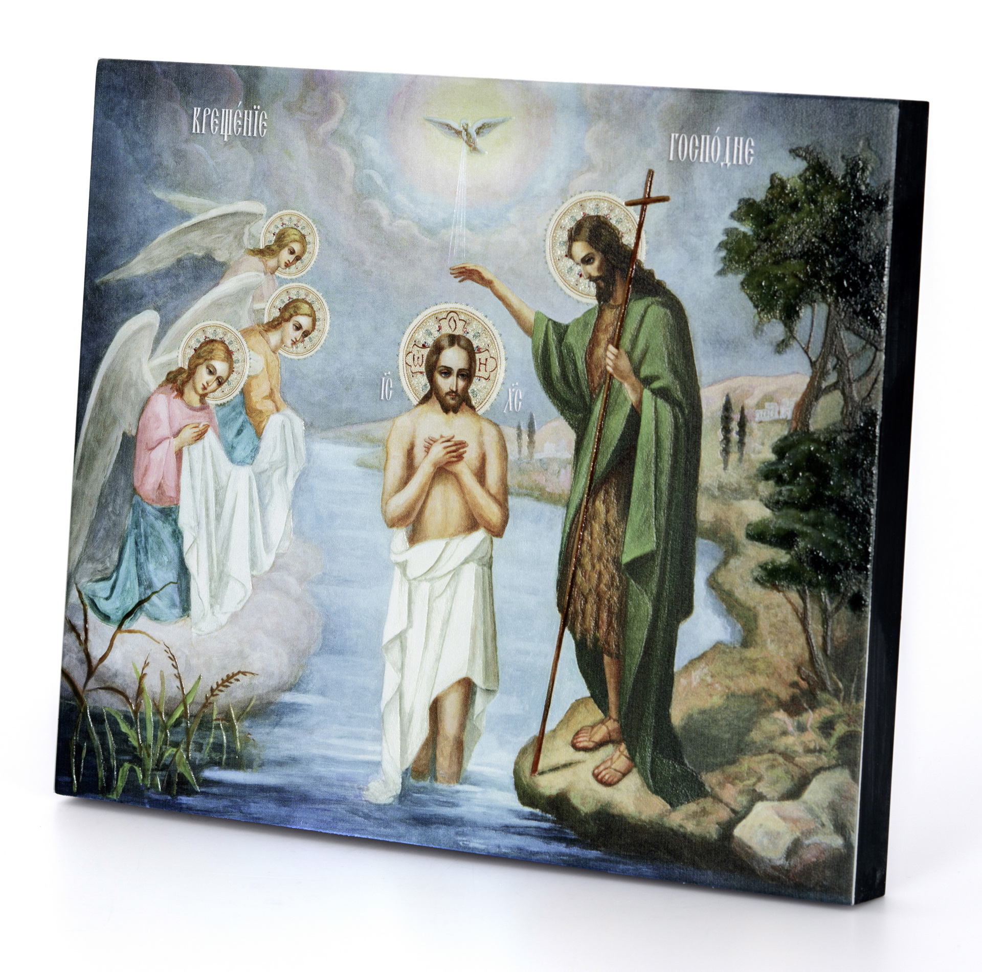 Икона на доске 22х26 объёмная печать, лак Крещение Господне,