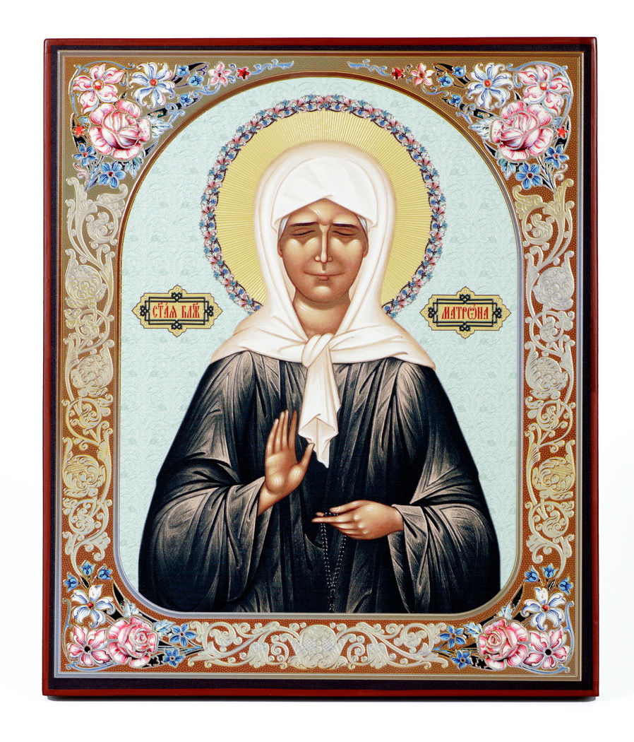 Икона на доске 22х26 объёмная печать, лак Матрона 2