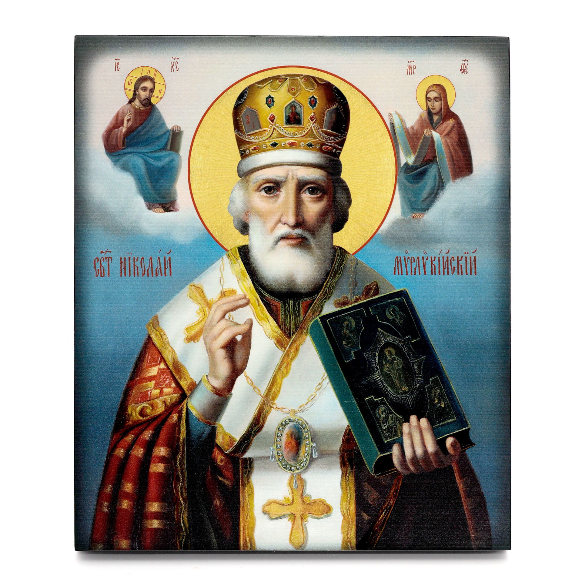 Икона на доске 22х26 объёмная печать, лак Николай Чудотворец 2