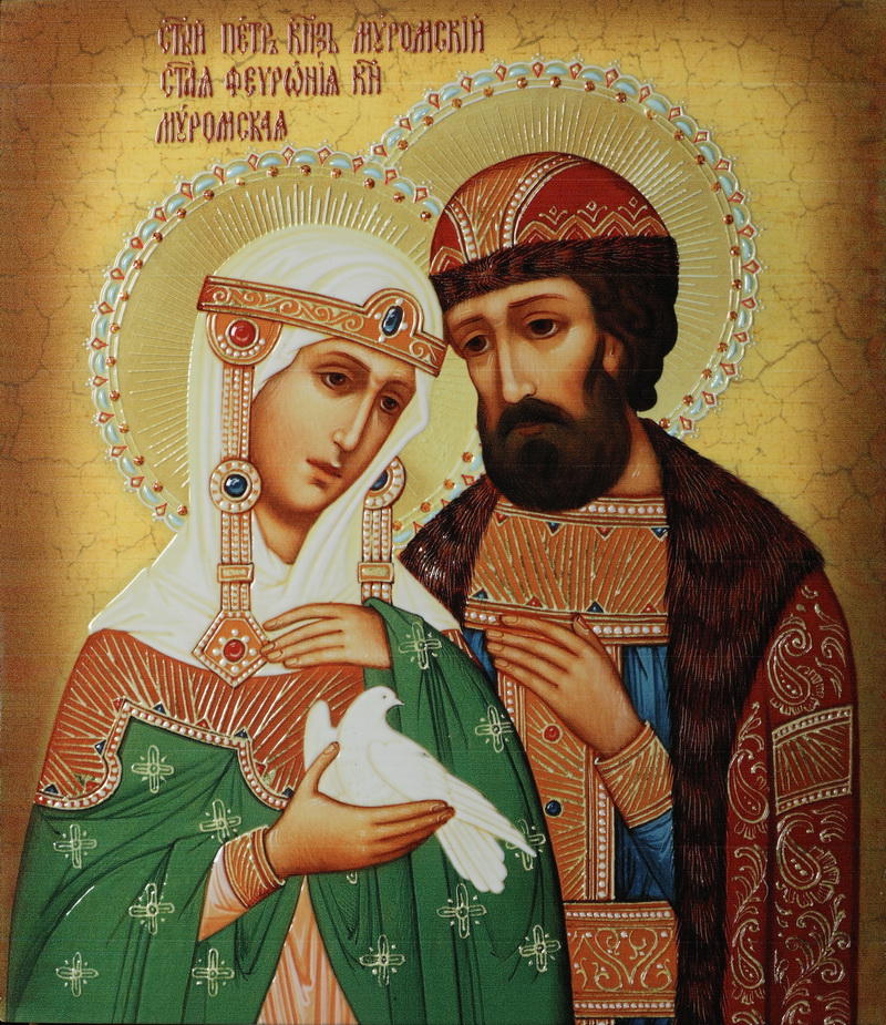Икона на доске 22х26 объёмная печать, лак Петр и Феврония