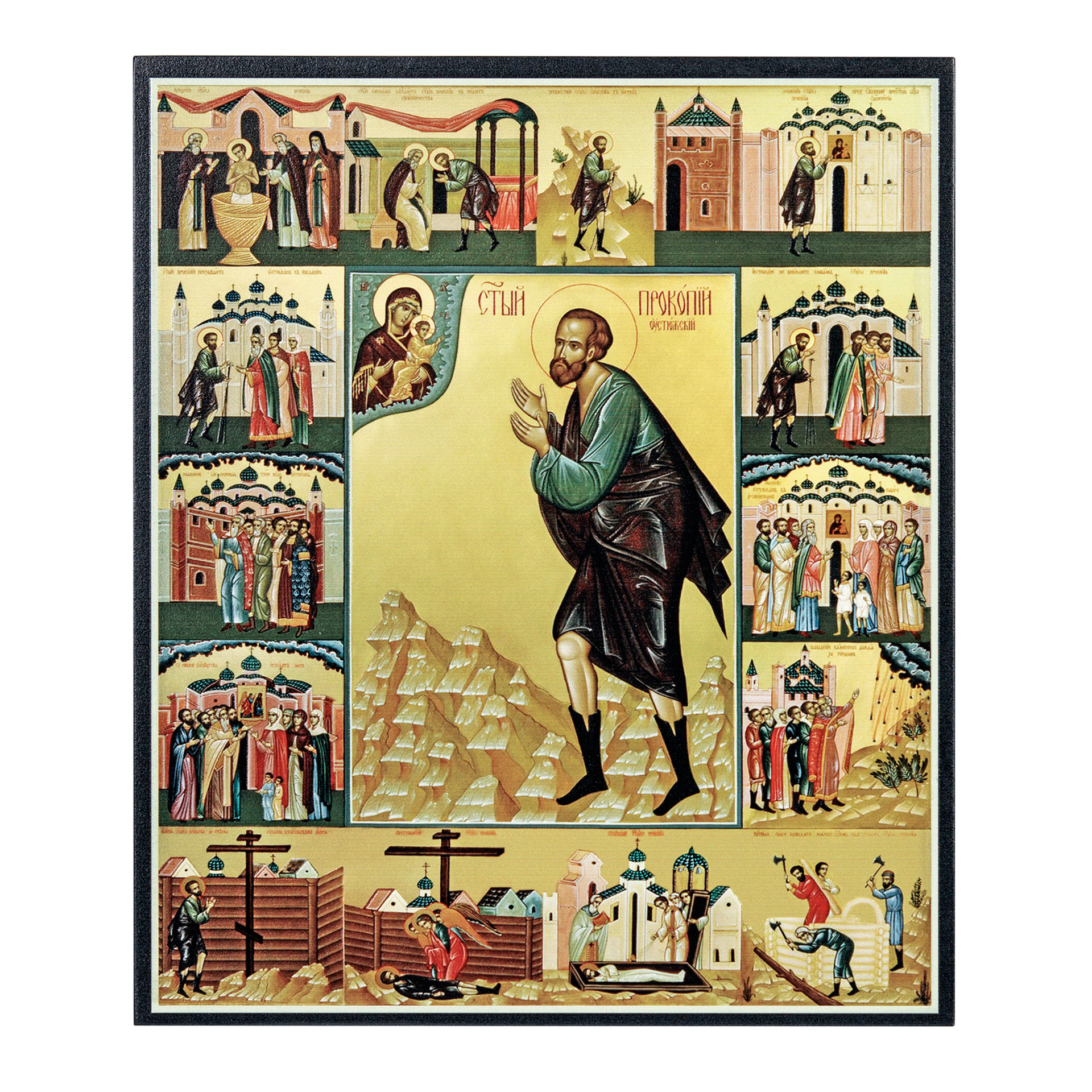 Икона на доске 22х26 объёмная печать, лак Прокоп Устюгский,