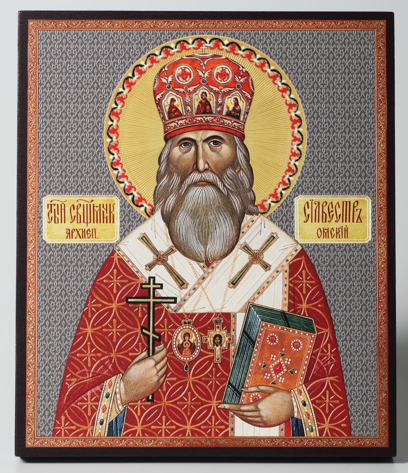 Икона на доске 22х26 объёмная печать, лак Сильвестр Омский