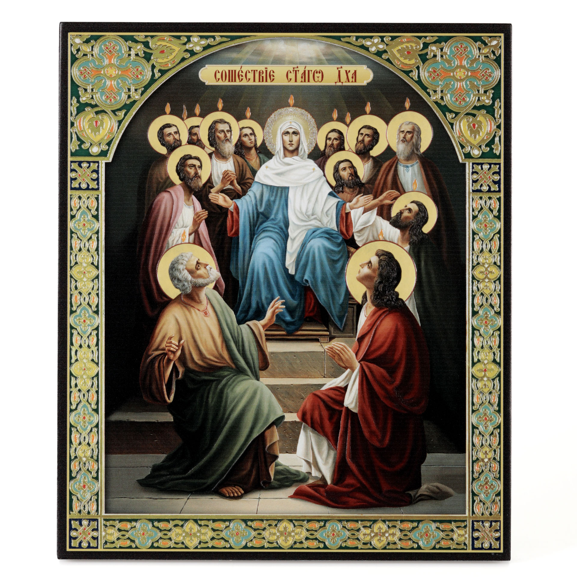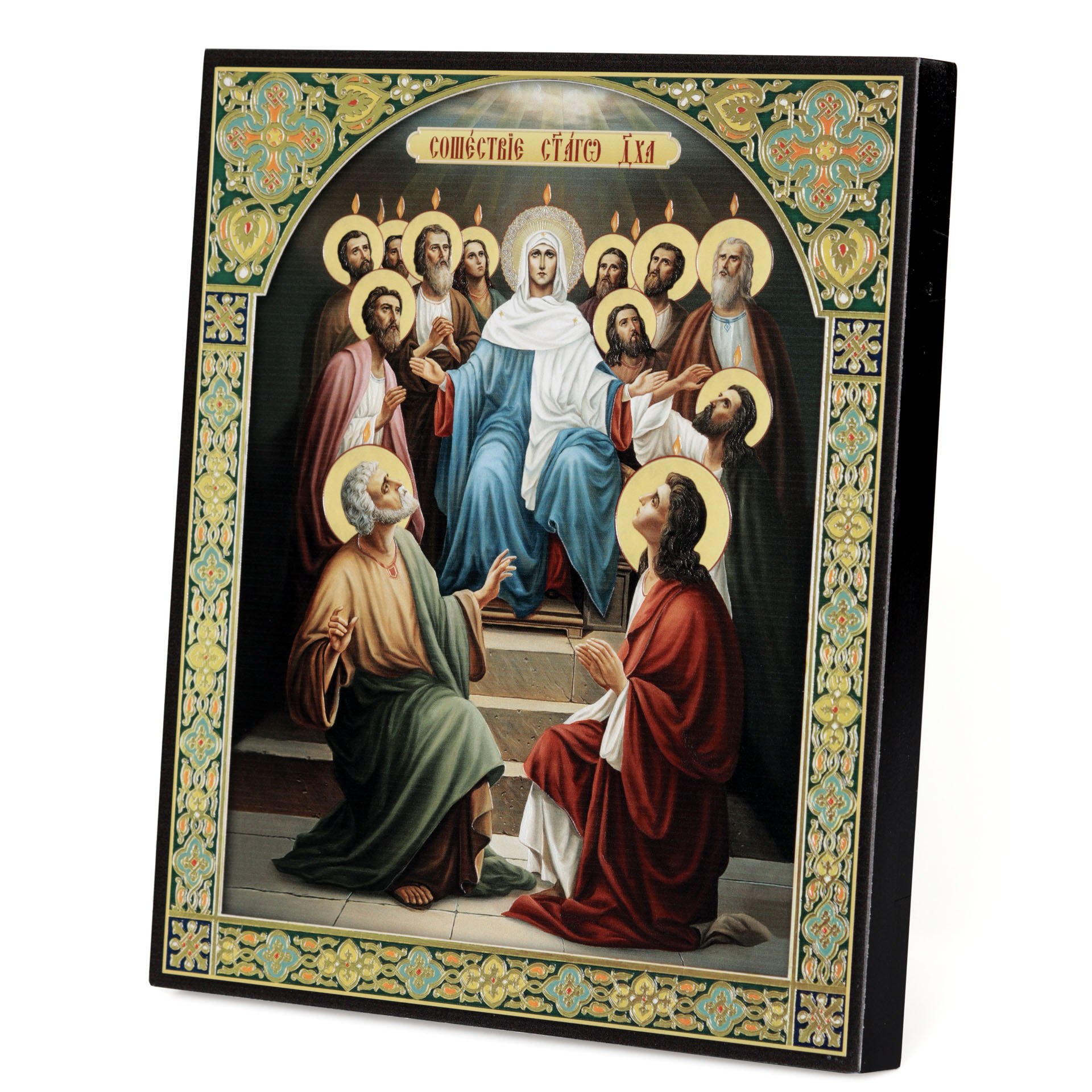 Икона на доске 22х26 объёмная печать, лак Сошествие Святого Духа 2
