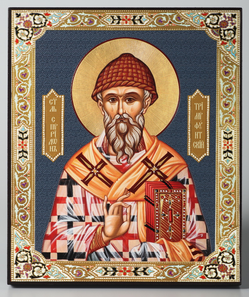 Икона на доске 22х26 объёмная печать, лак Спиридон Тримифунтский 1