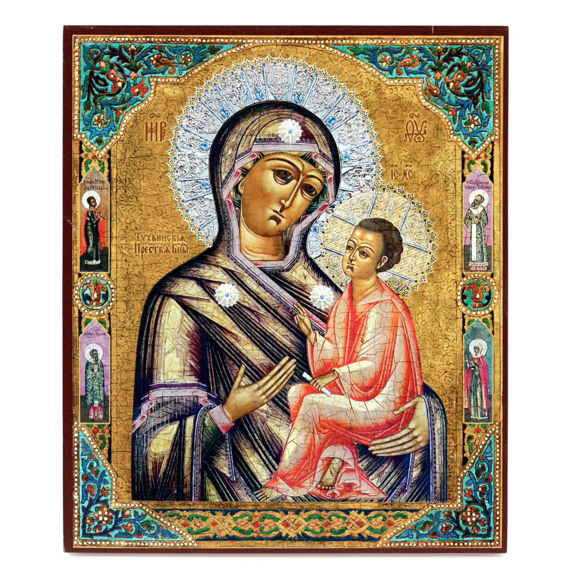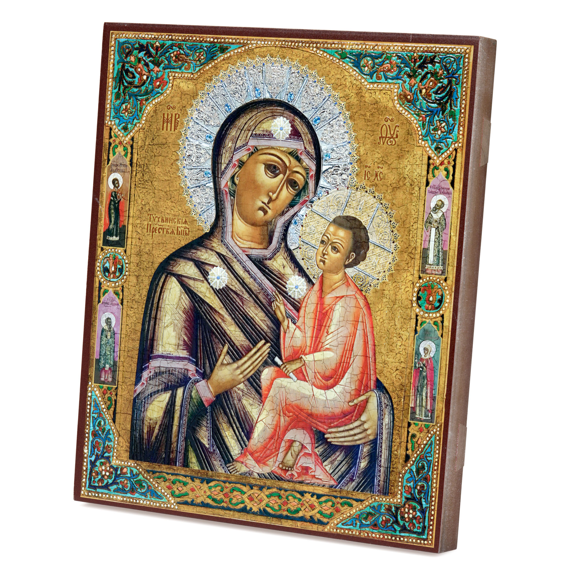 Икона на доске 22х26 объёмная печать, лак Тихвинская БМ 2