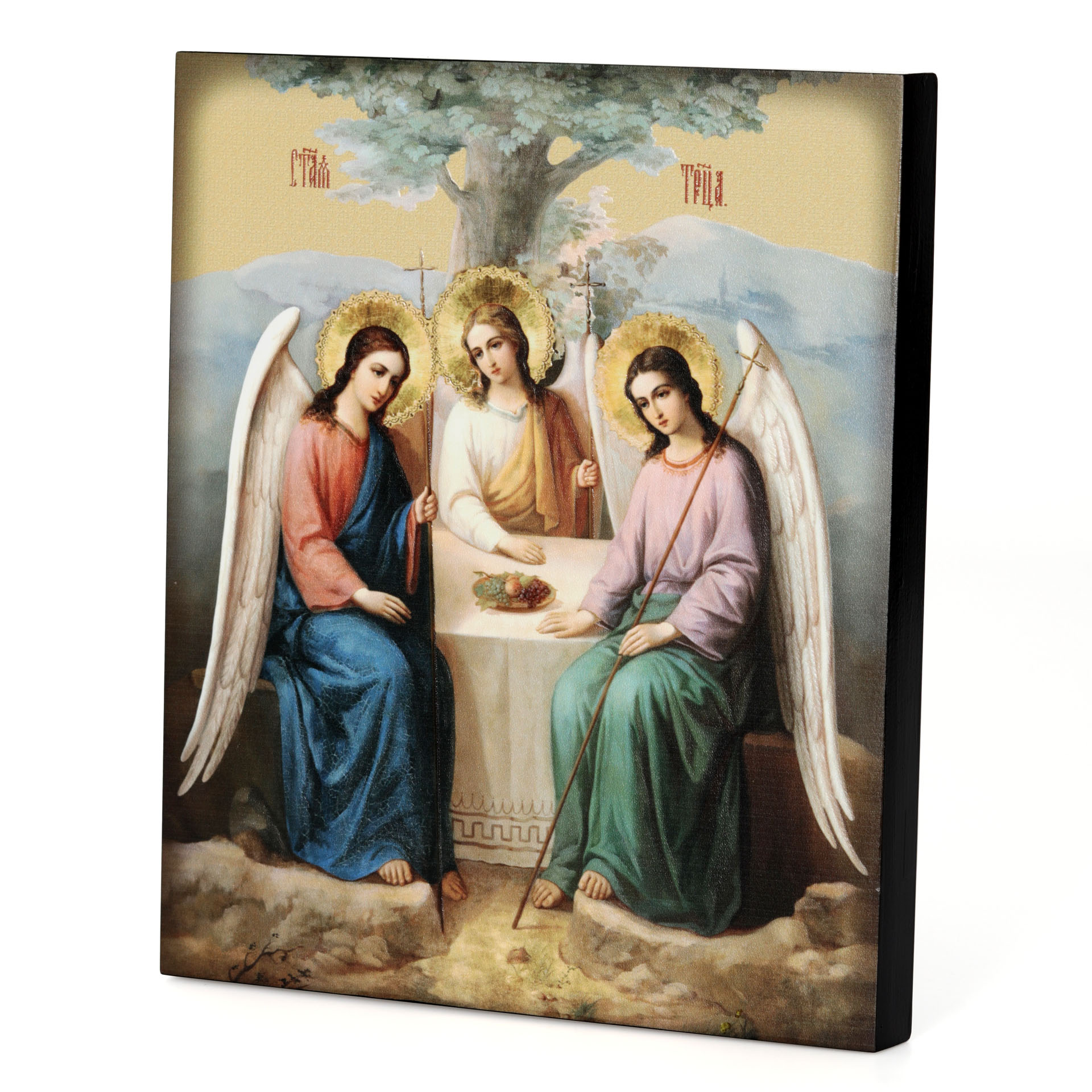 Икона на доске 22х26 объёмная печать, лак Троица 3