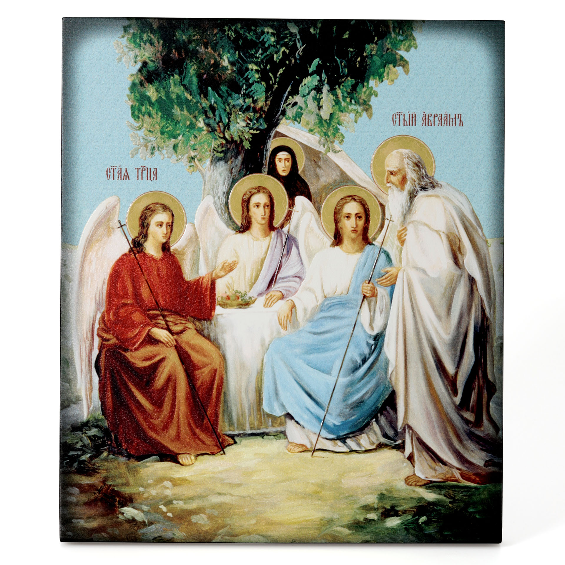 Икона на доске 22х26 объёмная печать, лак Троица 4
