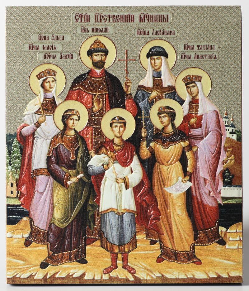 Икона на доске 22х26 объёмная печать, лак Царская семья 2