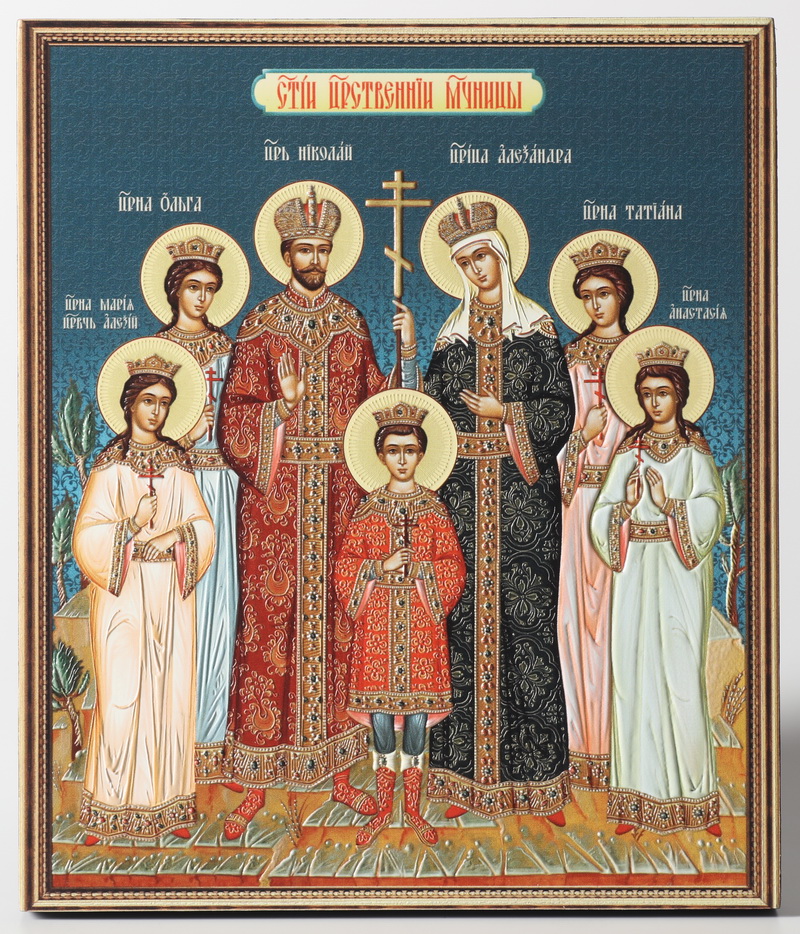 Икона на доске 22х26 объёмная печать, лак Царская семья