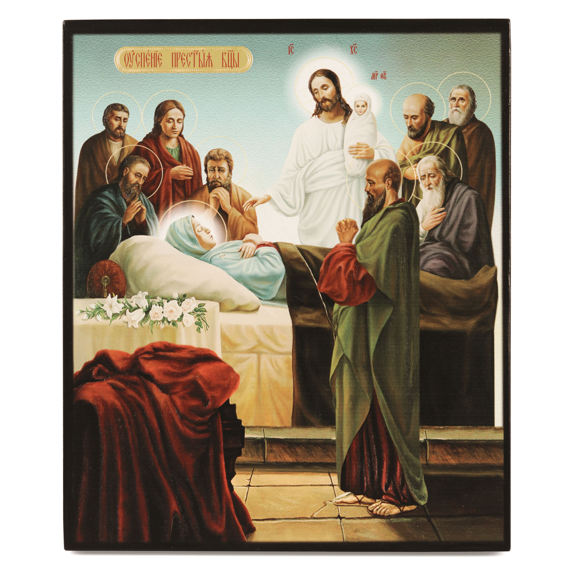 Икона на доске 22х26 объёмная печать, лак Успение Богородицы 2