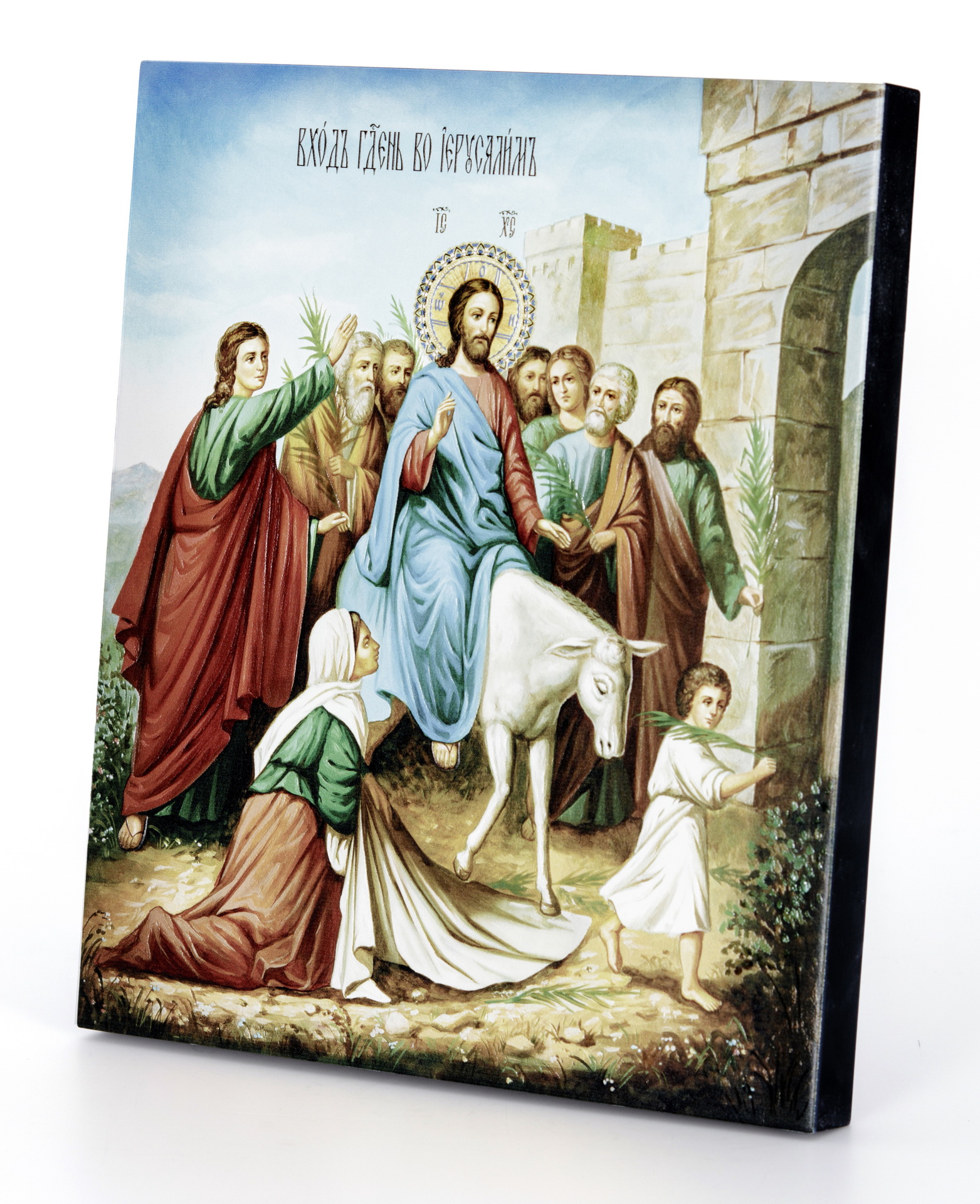 Икона на доске 22х26 объёмная печать, лак Вход в Иерусалим,