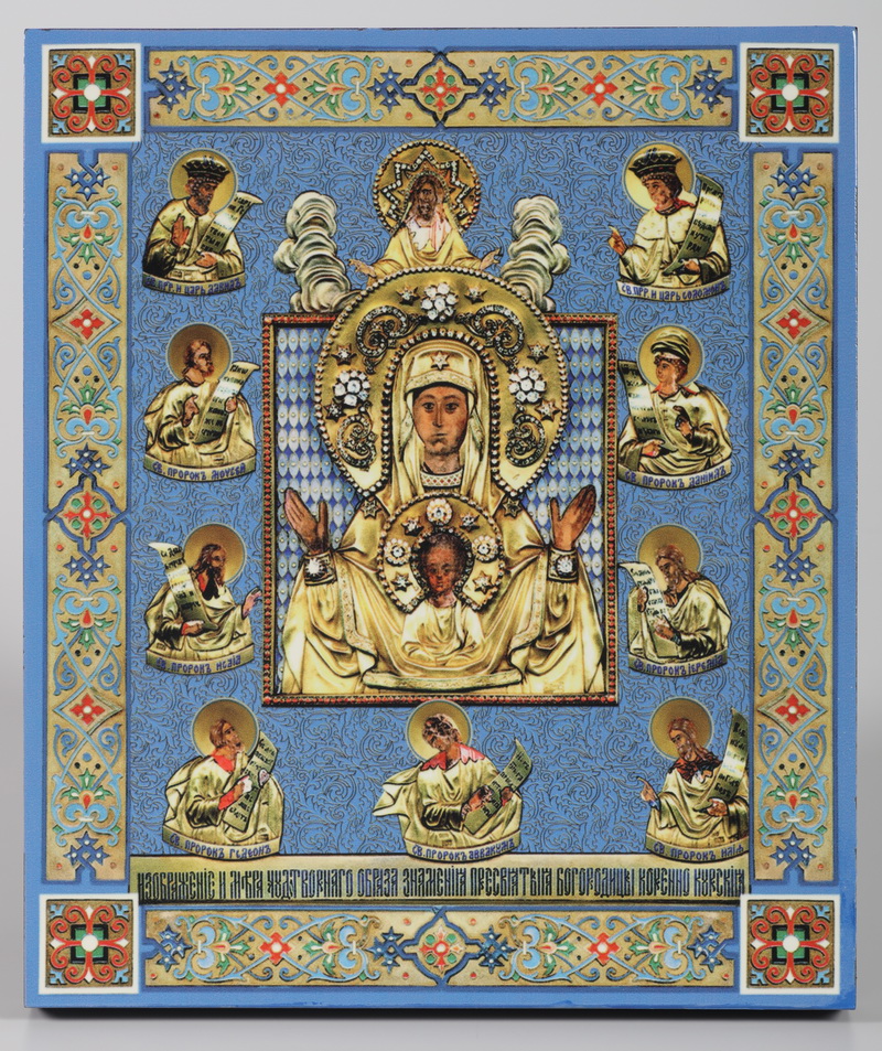 Икона на доске 22х26 объёмная печать, лак Знамение Курско-Корен. иконы на гол.фоне