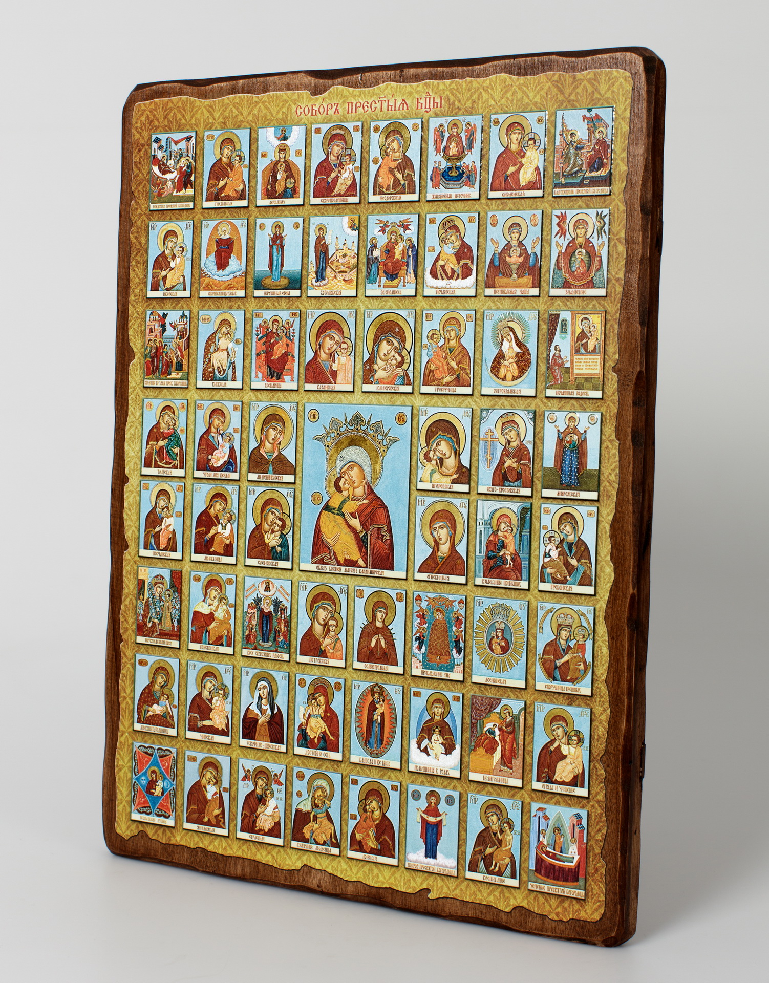 Иконы изготовлены на досках «под старинное дерево». Доски искусственно состарены и могут иметь трещины, сколы и потертости.