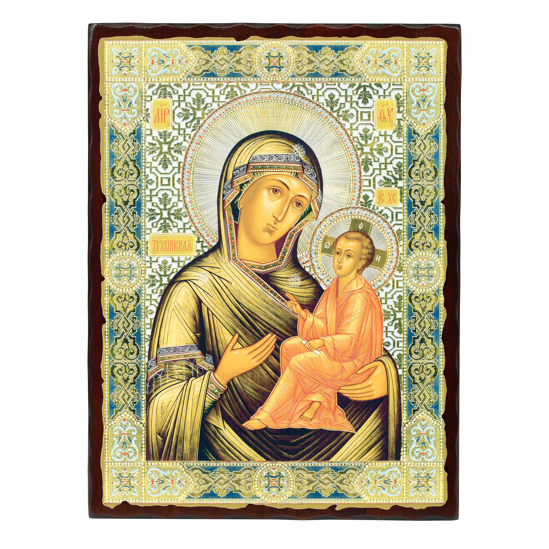 Икона на доске 30х40 объемная печать, лак №1 Тихвинская БМ