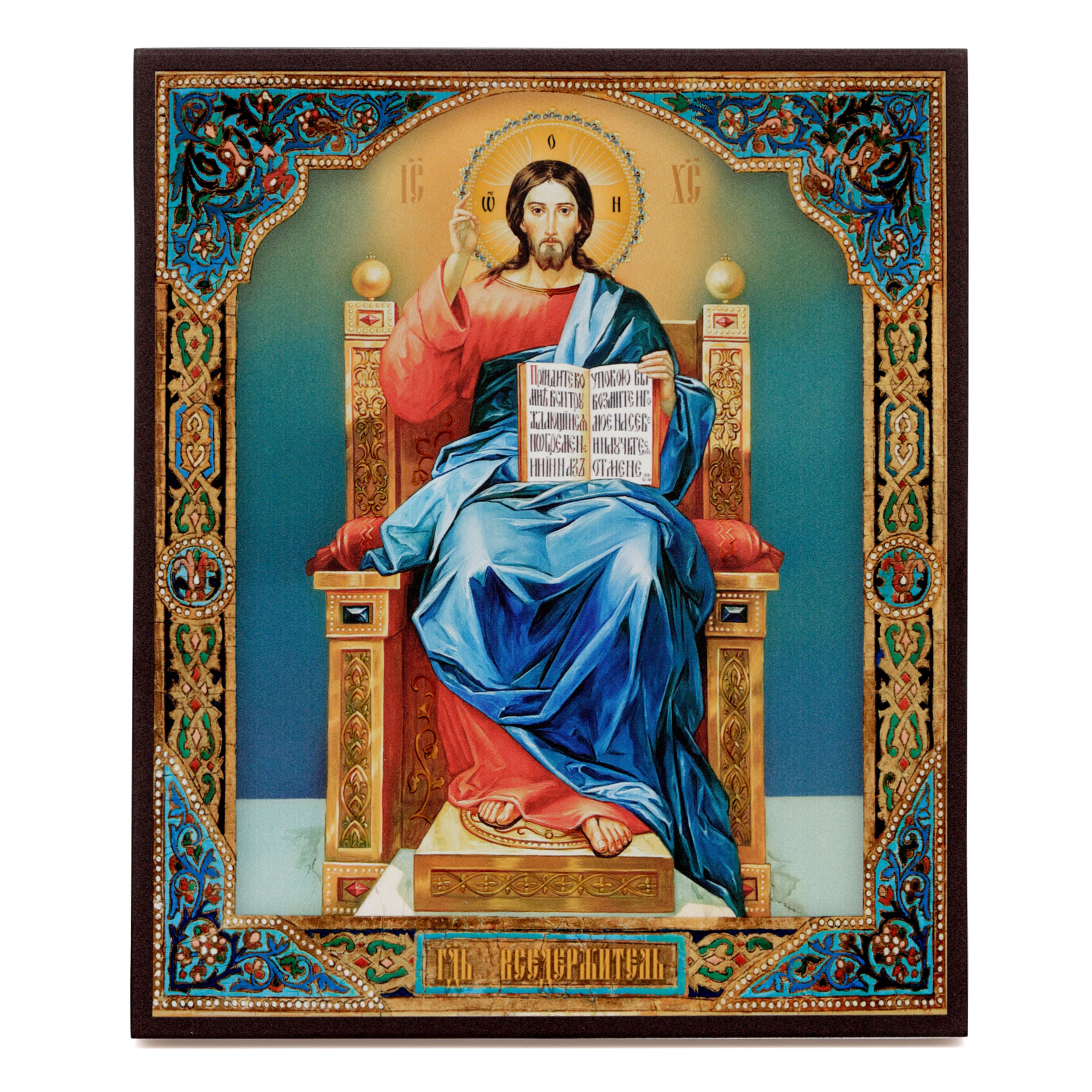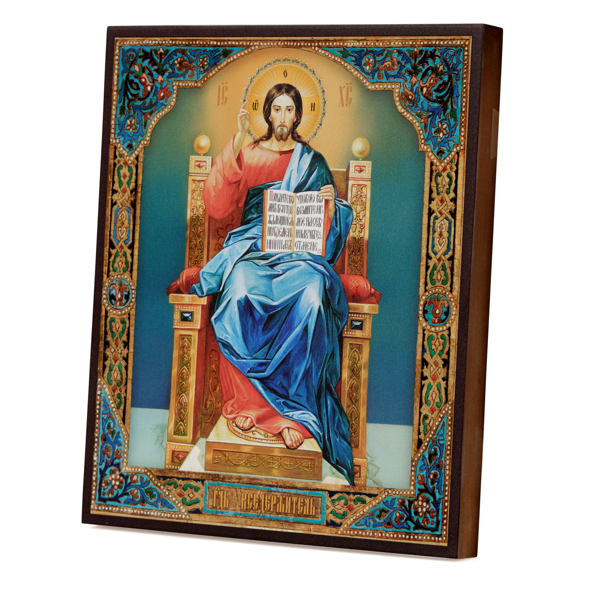 Икона на доске 30х40 объемная печать, лак №2 Спаситель на троне