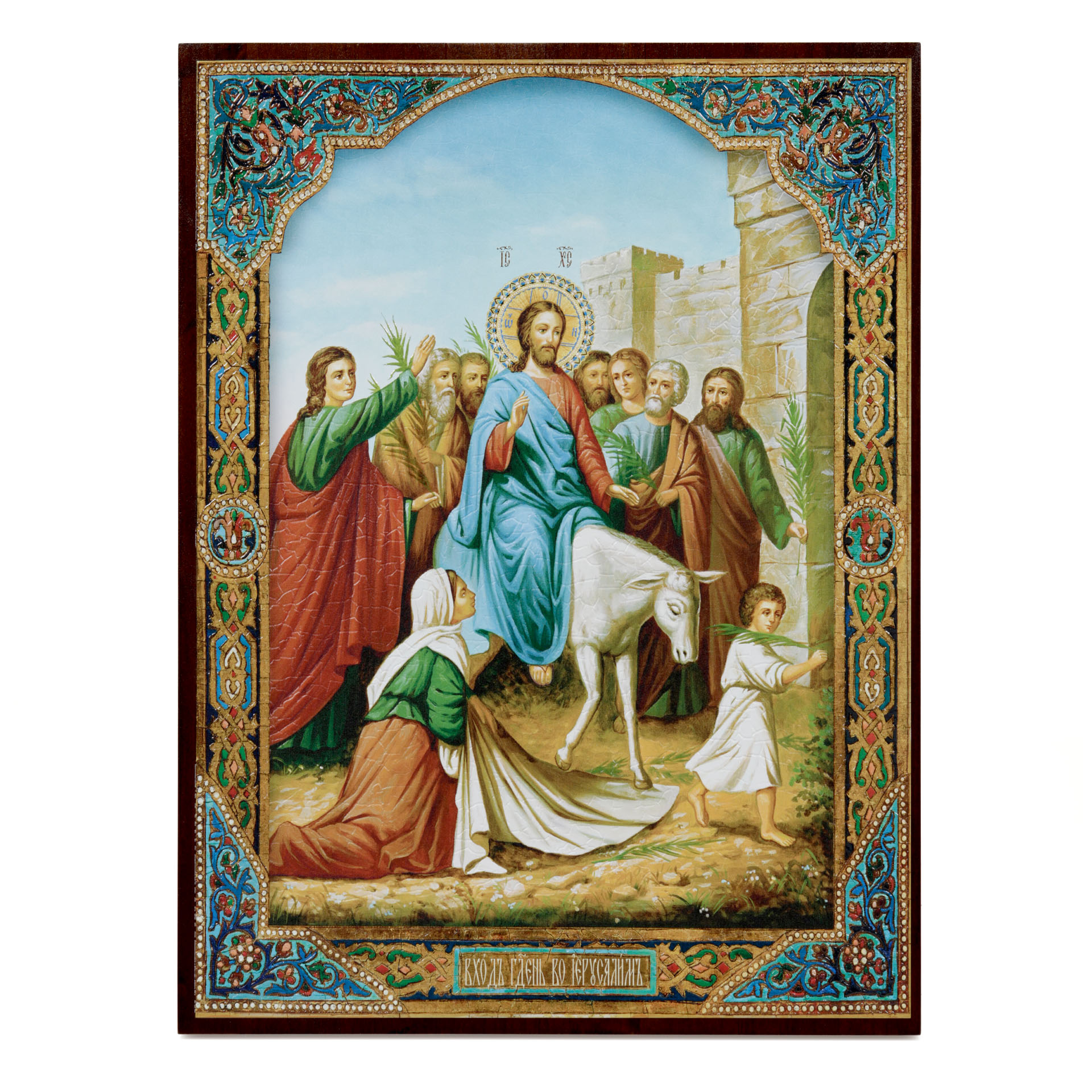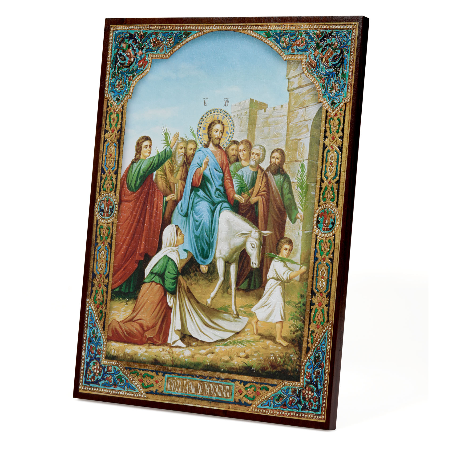 Икона на доске 30х40 объемная печать, лак №2 Вход в Иерусалим