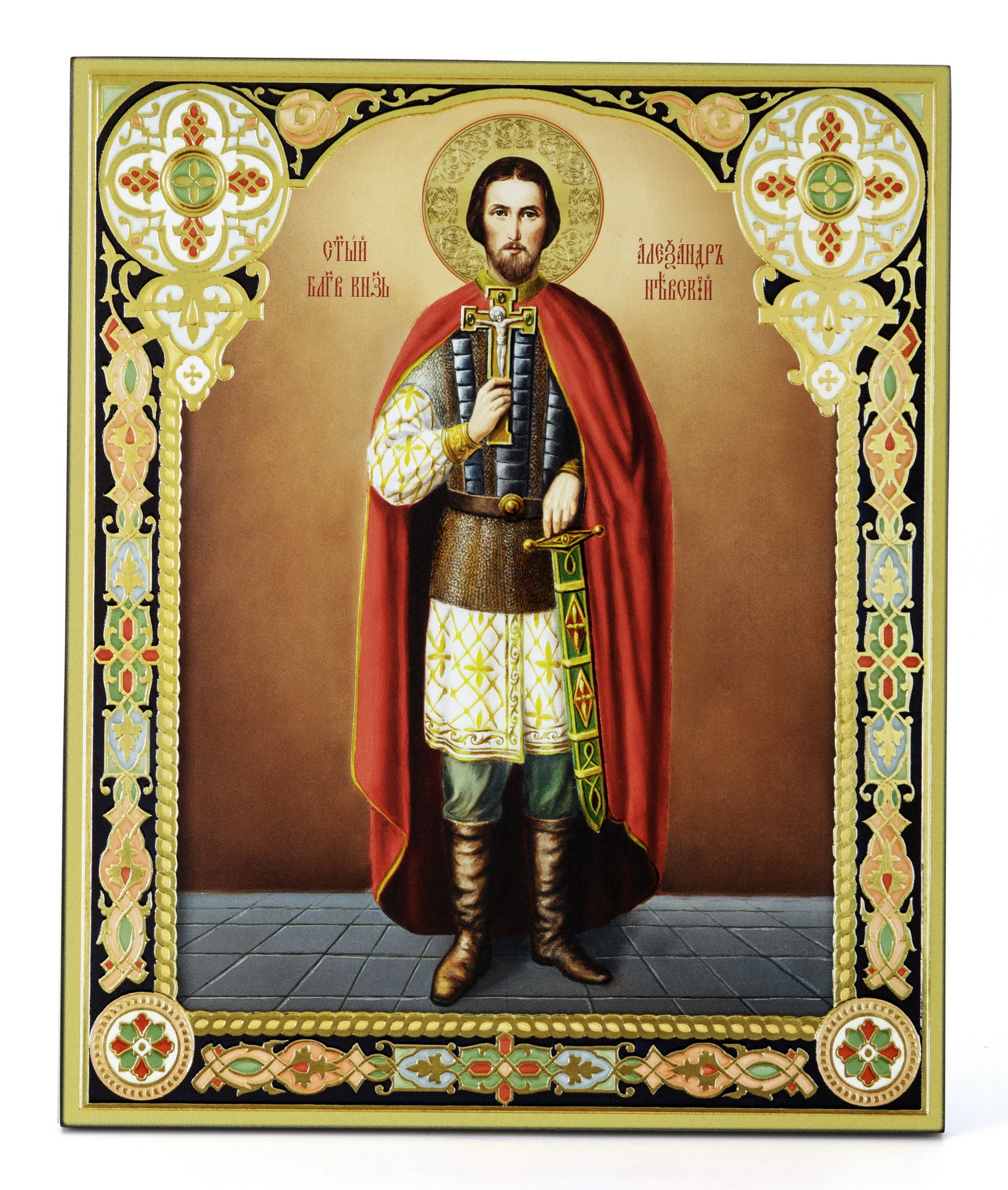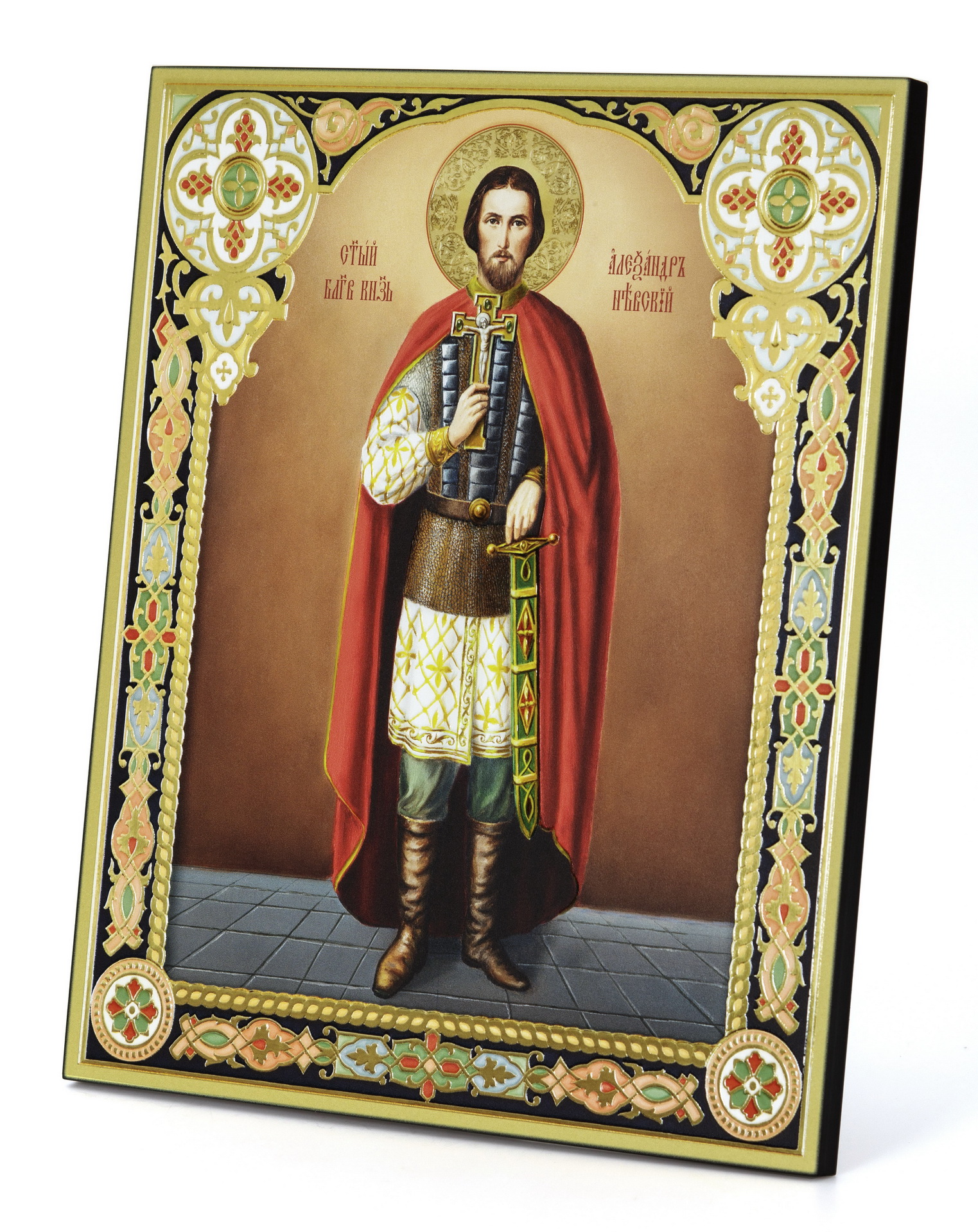 Икона на доске 33х40 объемная печать, лак Александр Невский,
