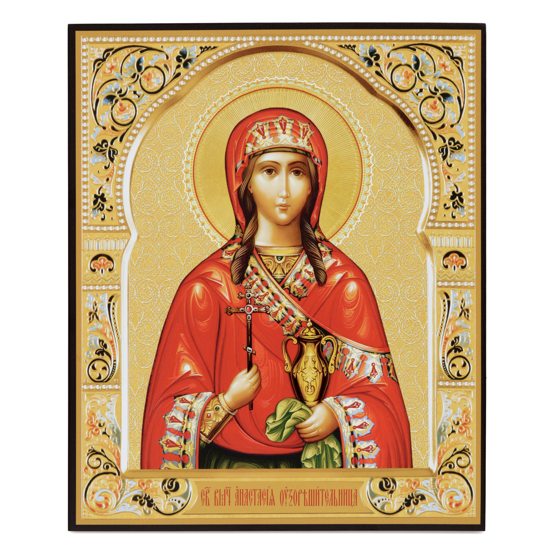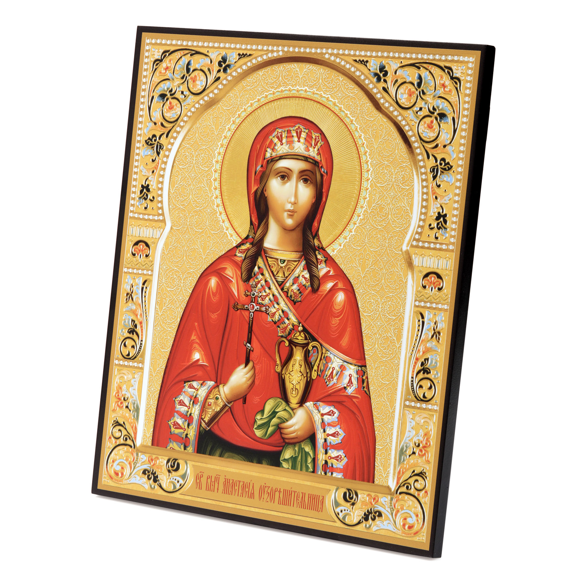 Икона на доске 33х40 объемная печать, лак Анастасия Узорешительница