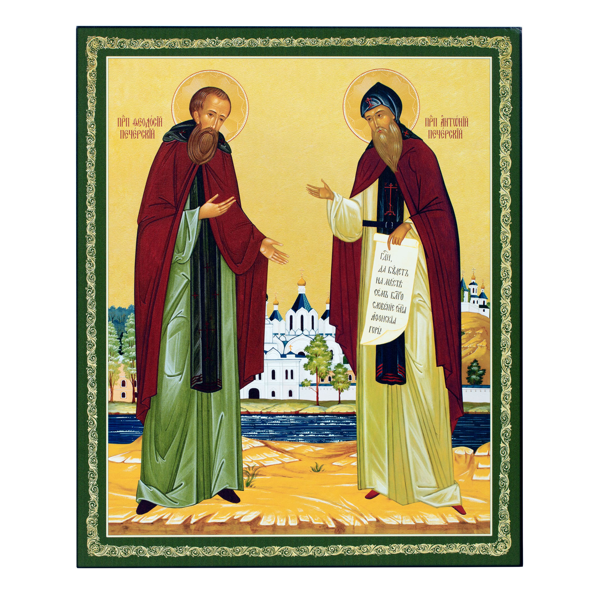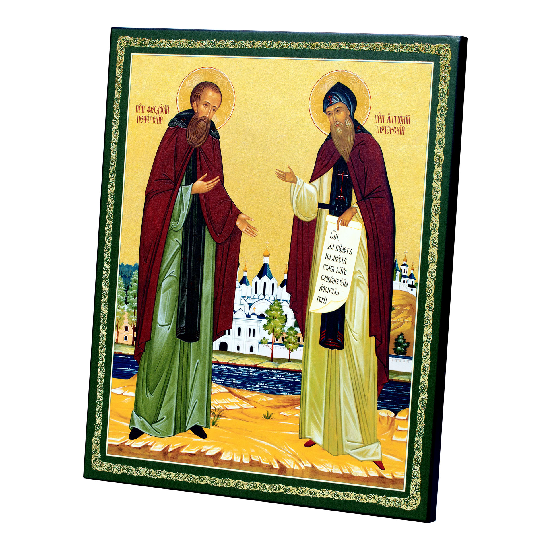 Икона на доске 33х40 объемная печать, лак Антоний и Феодосий Печерские