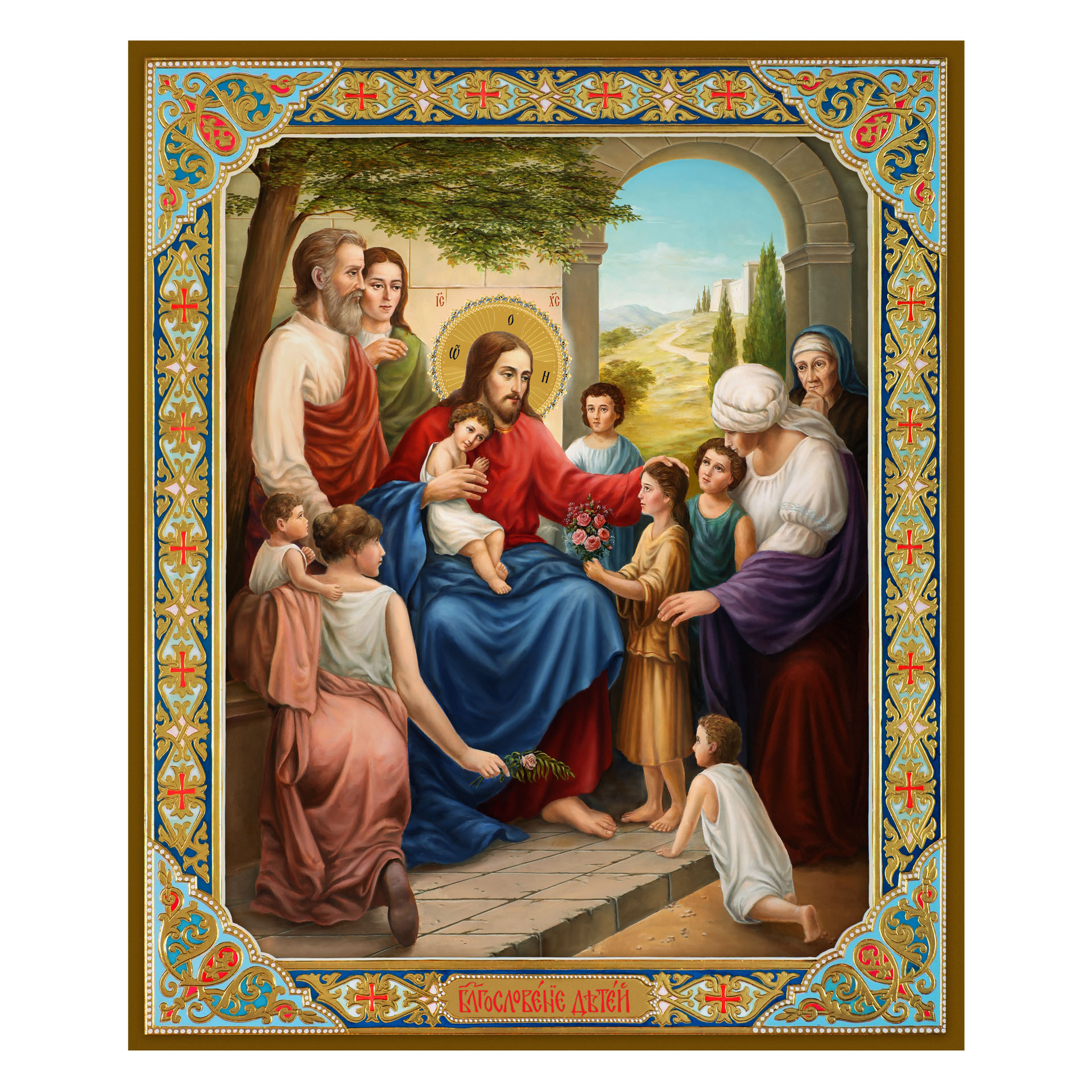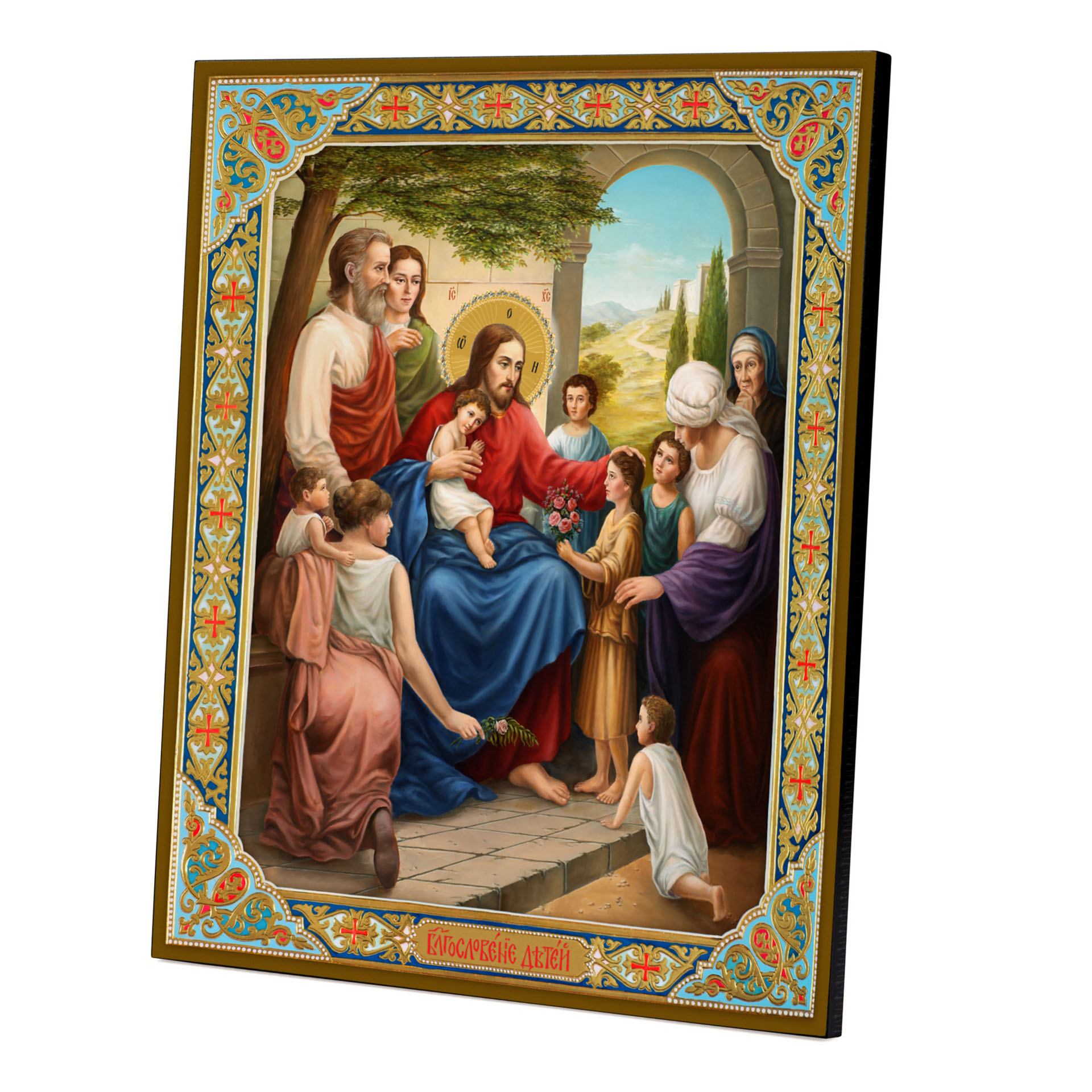 Икона на доске 33х40 объемная печать, лак Благословение детей 2