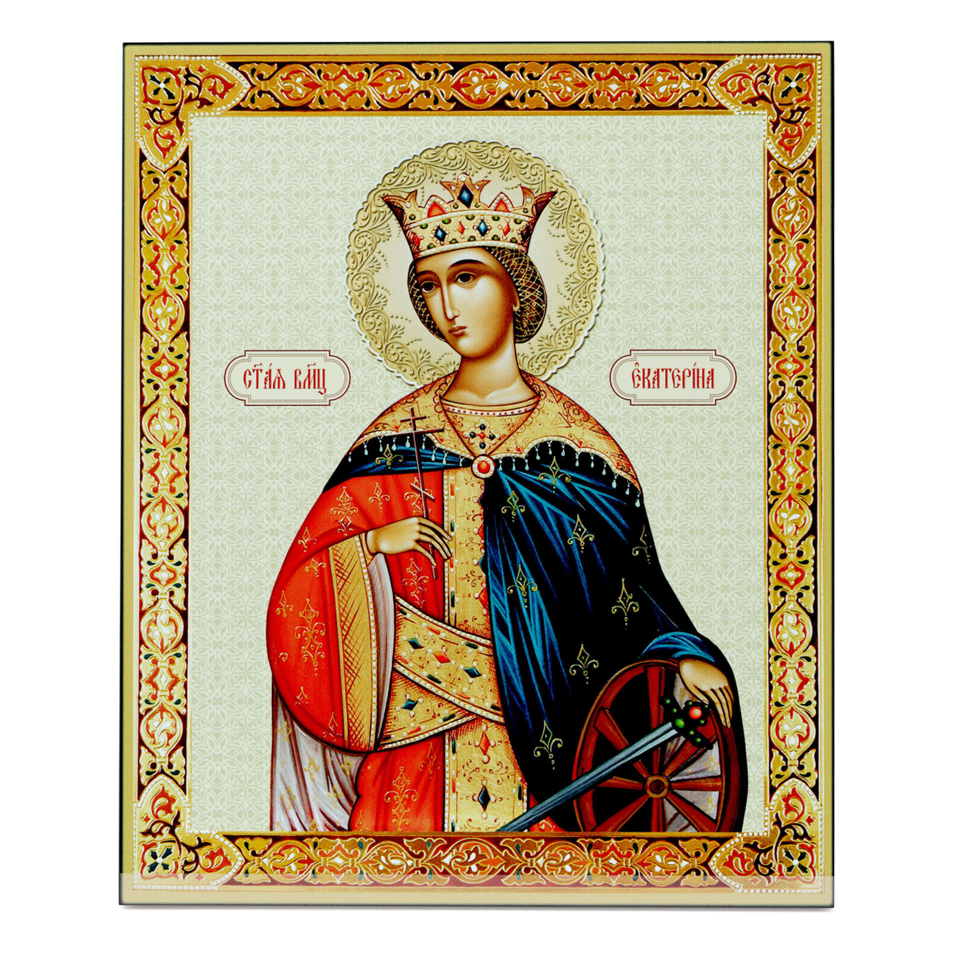 Икона на доске 33х40 объемная печать, лак Екатерина