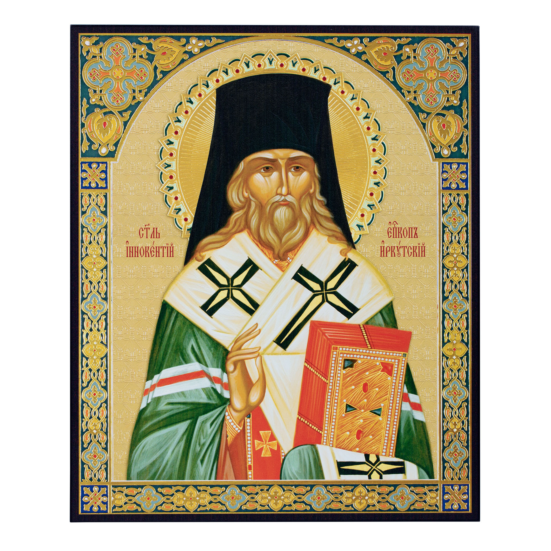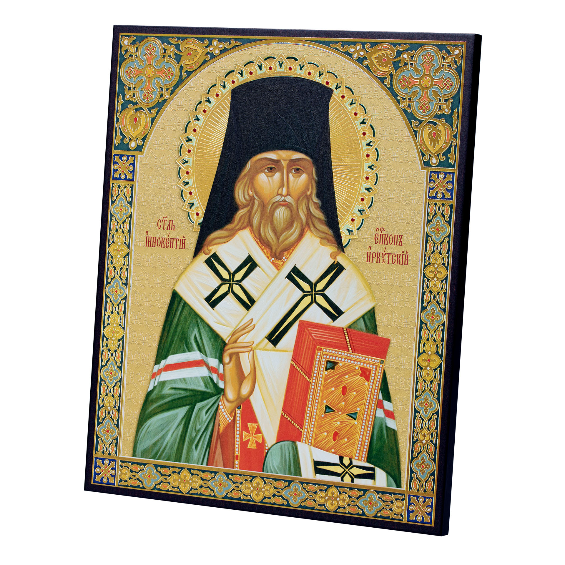 Икона на доске 33х40 объемная печать, лак Иннокентий Иркутский
