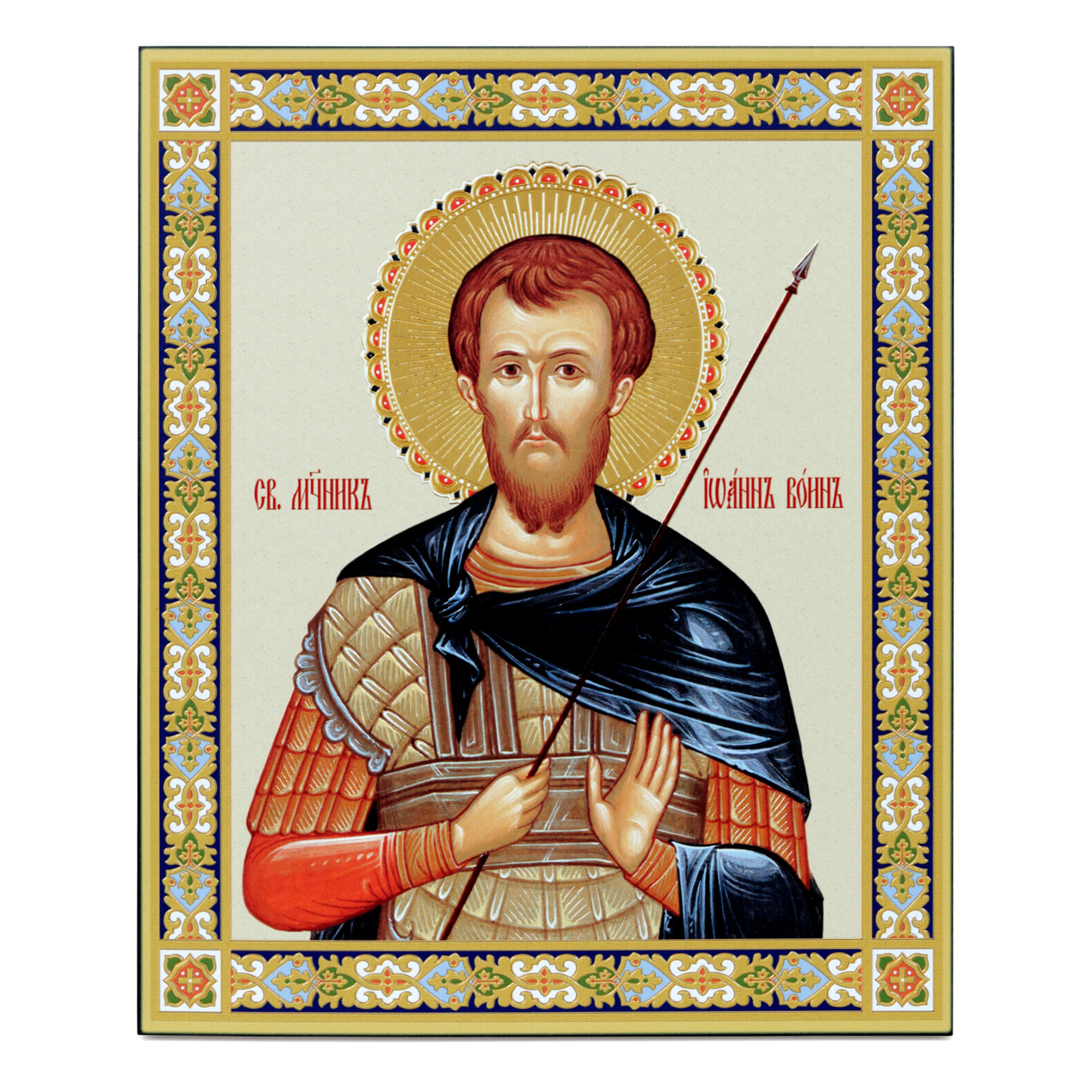 Икона на доске 33х40 объемная печать, лак Иоанн Воин