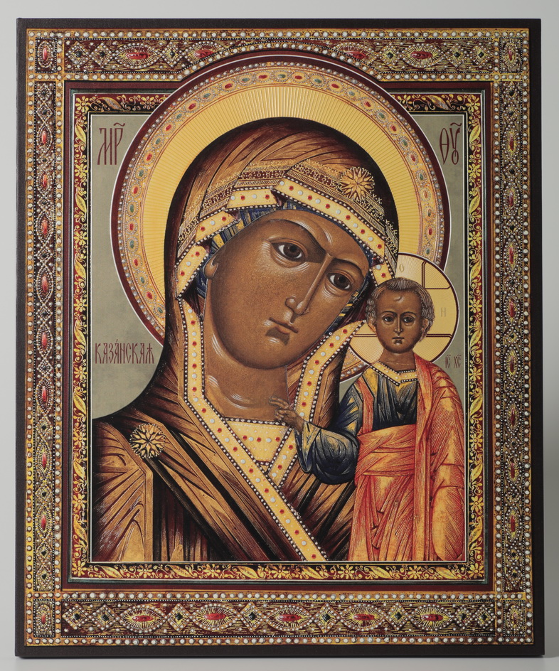 Икона на доске 33х40 объемная печать, лак Казанская БМ 1