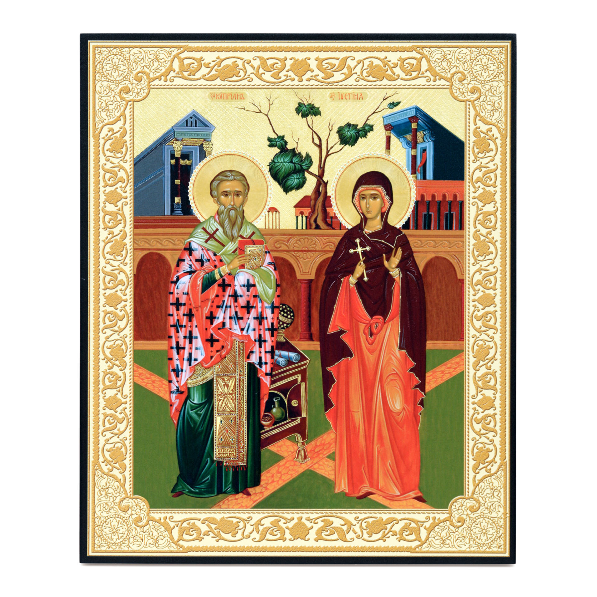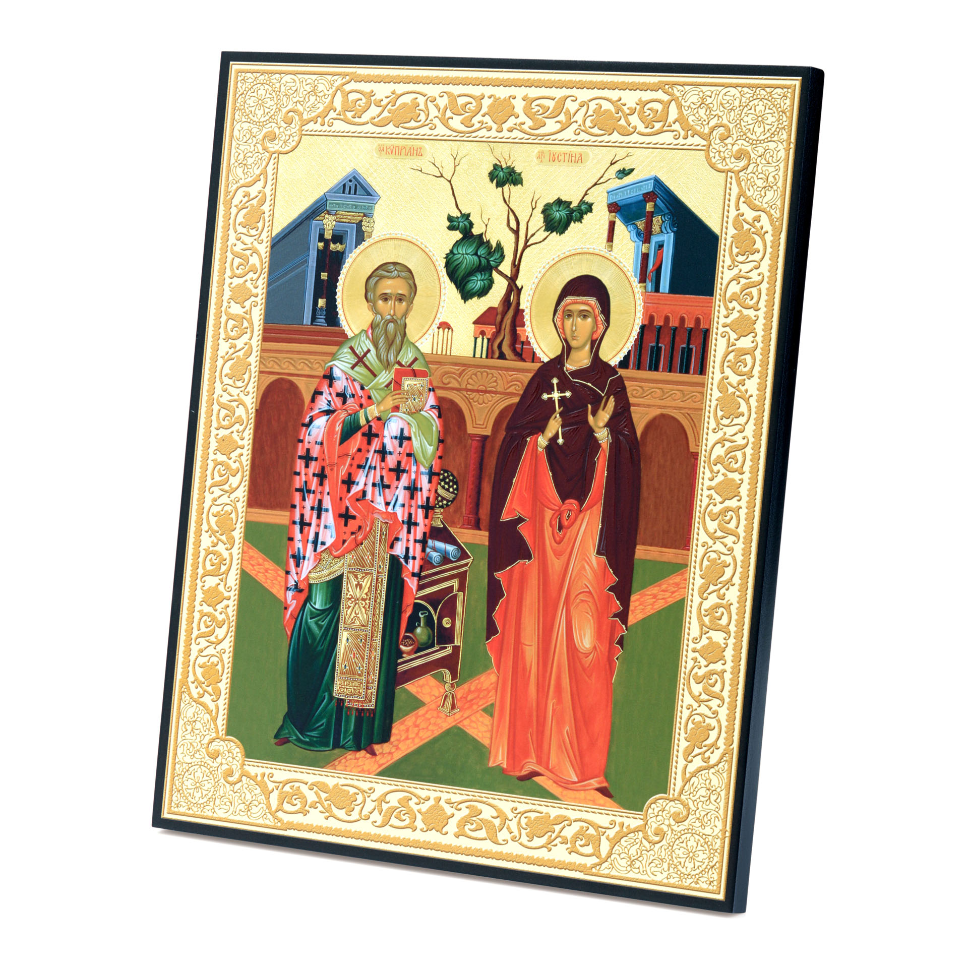 Икона на доске 33х40 объемная печать, лак Киприан и Иустина