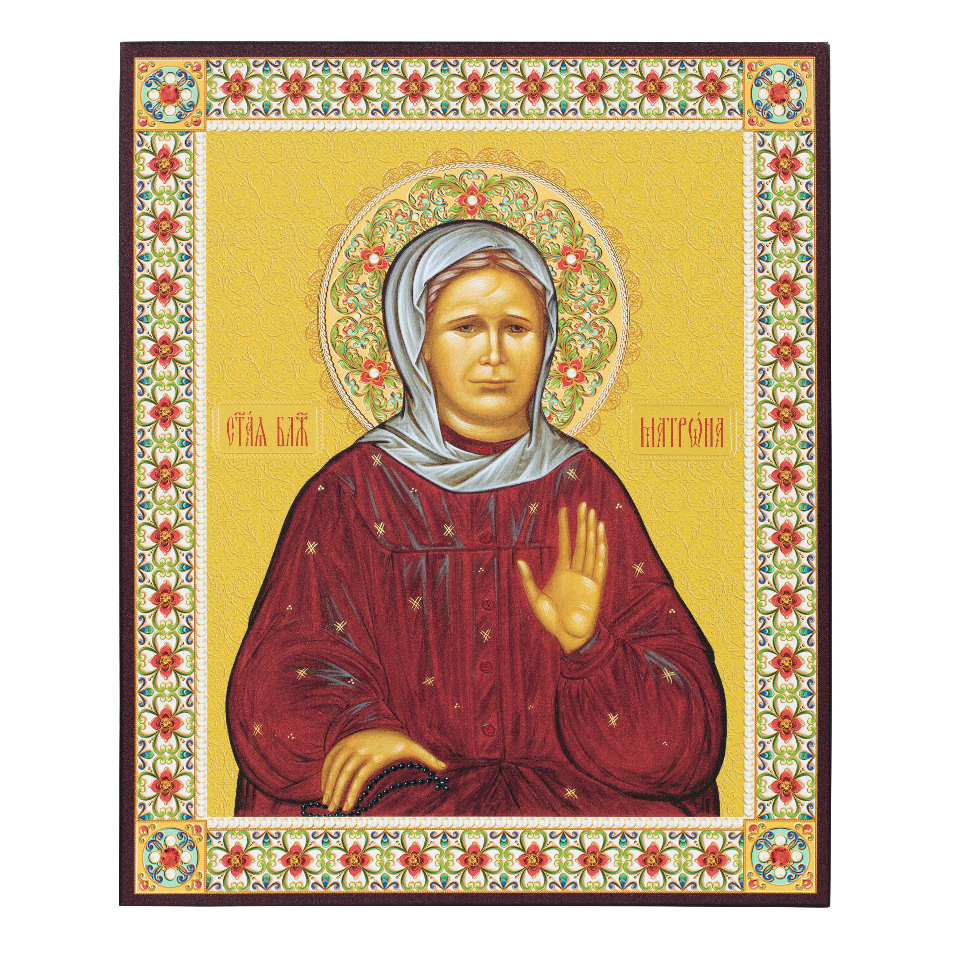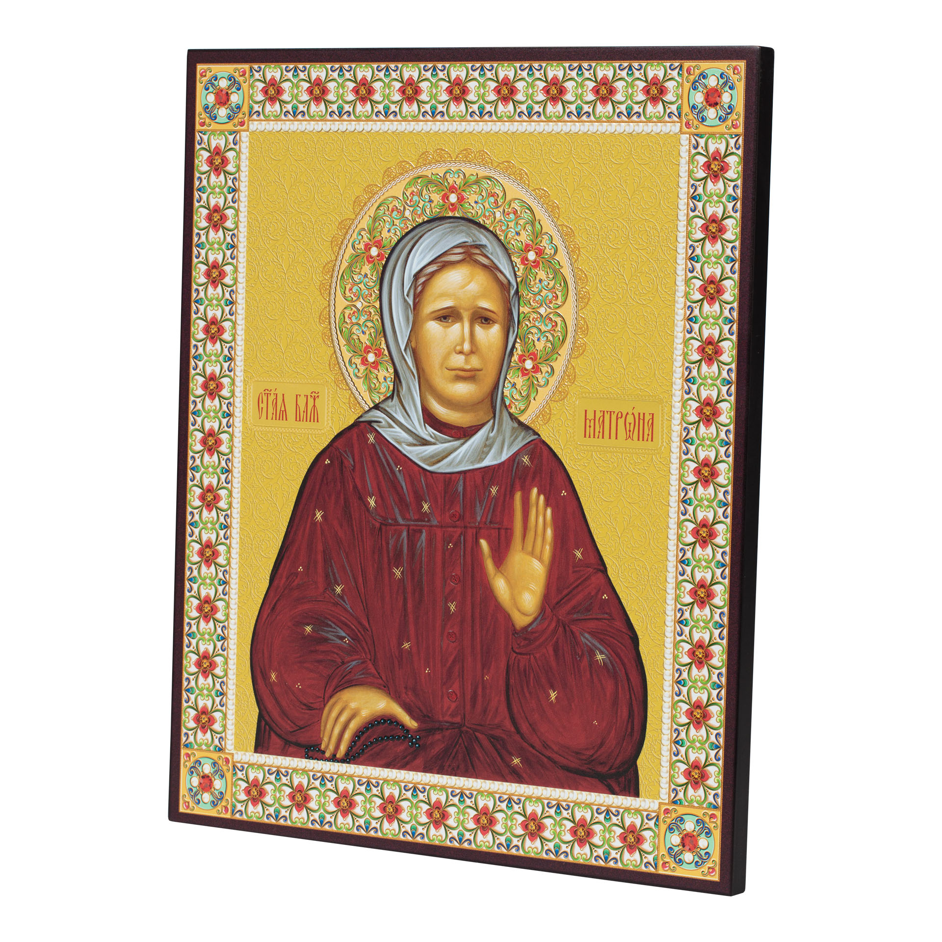 Икона на доске 33х40 объемная печать, лак Матрона