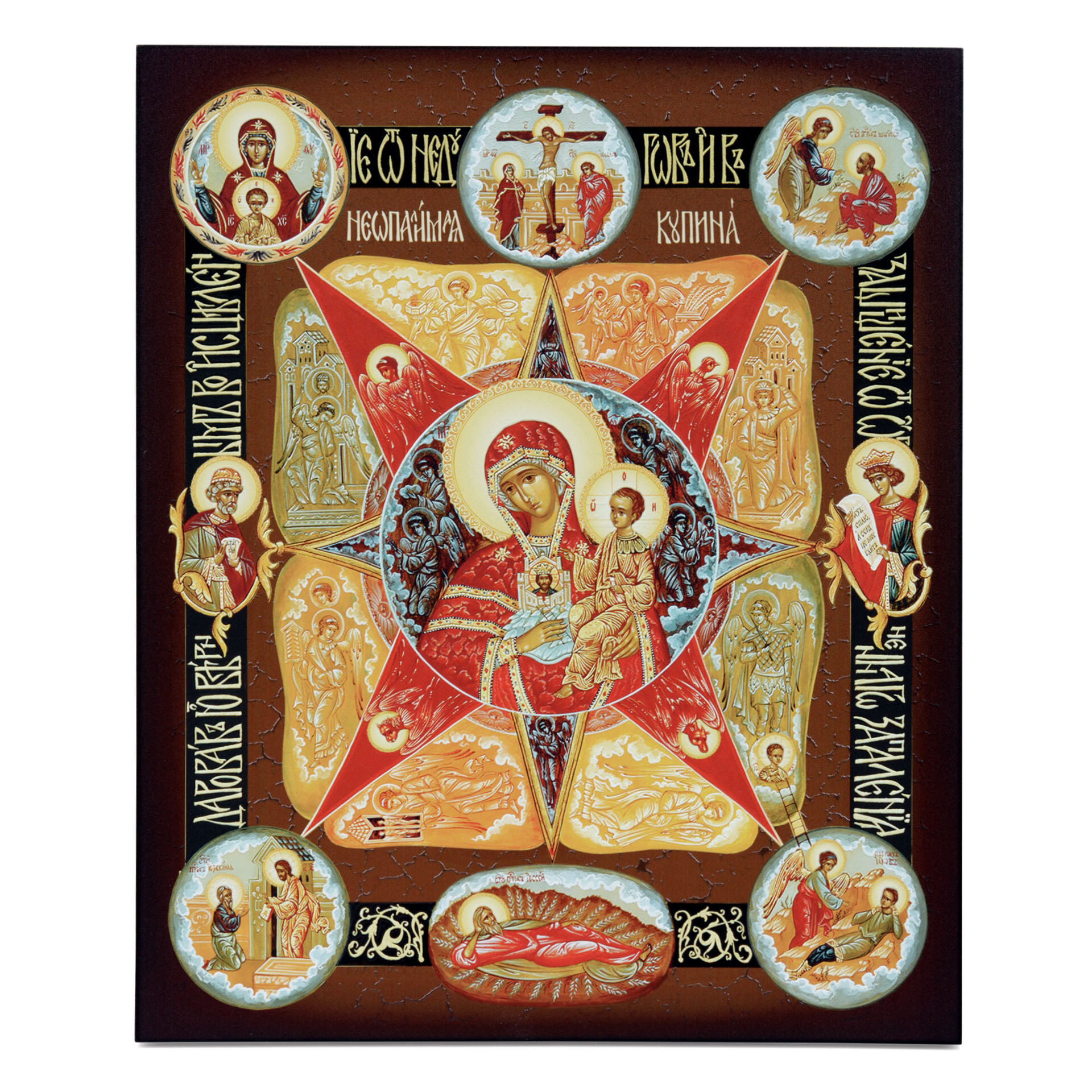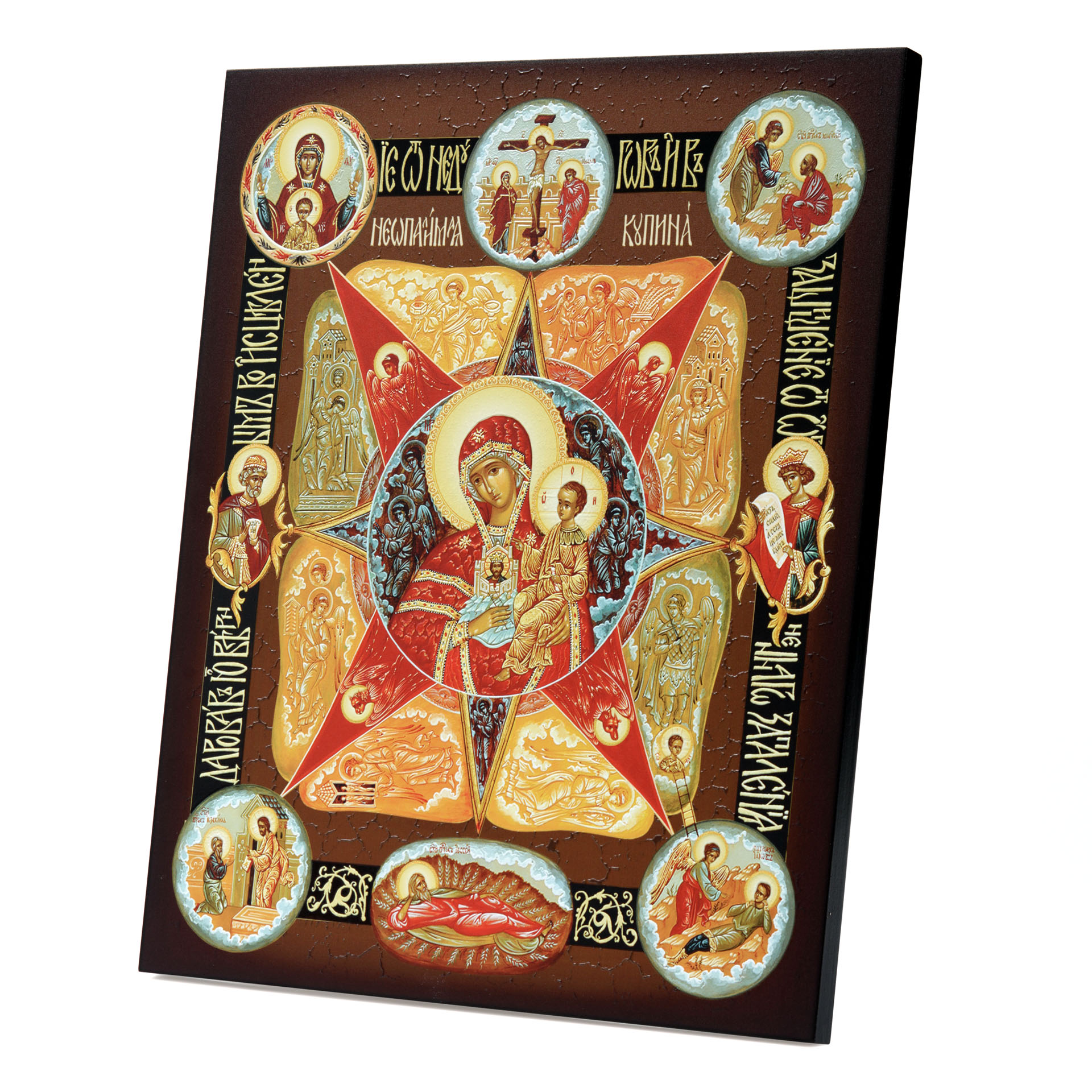 Икона на доске 33х40 объемная печать, лак Неопалимая Купина