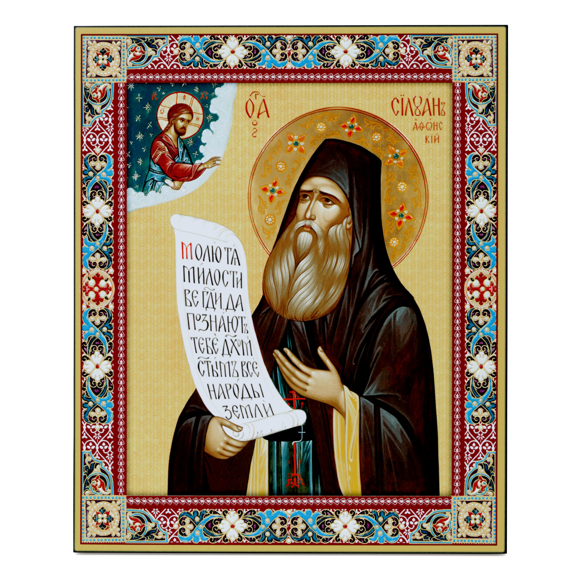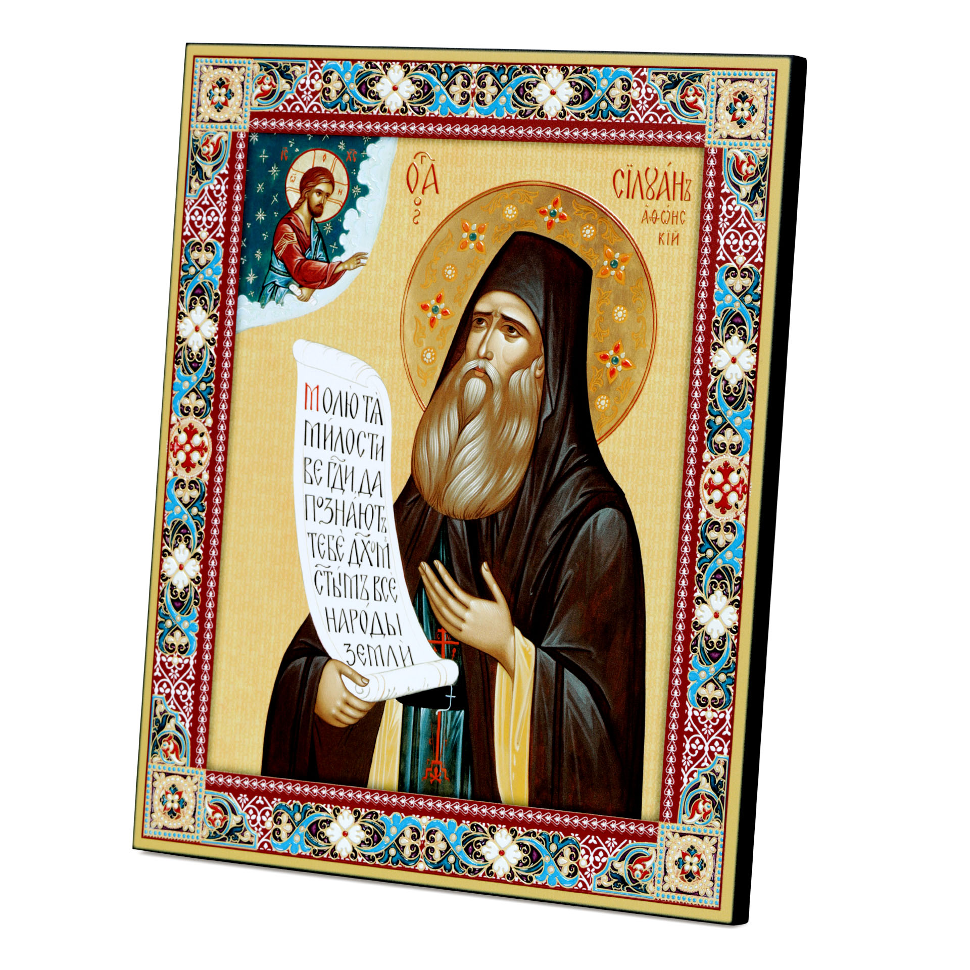 Икона на доске 33х40 объемная печать, лак Силуан Афонский