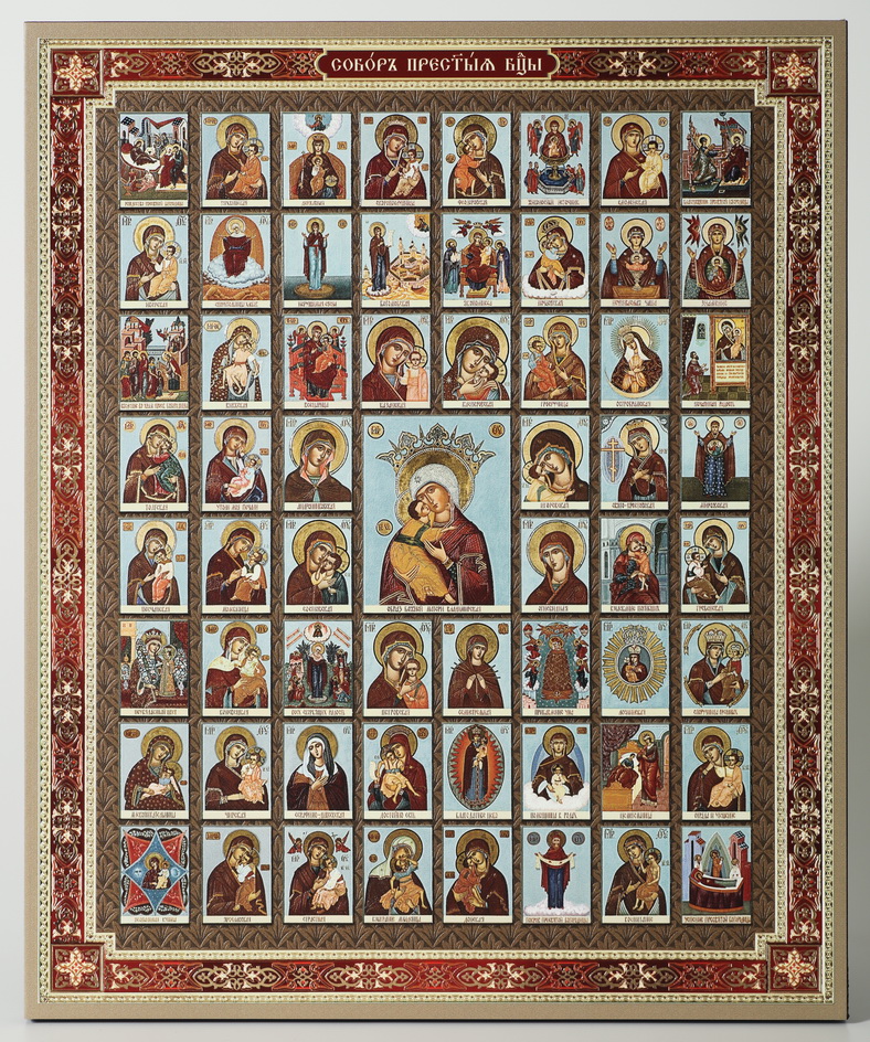 Икона на доске 33х40 объемная печать, лак Собор Богородицы