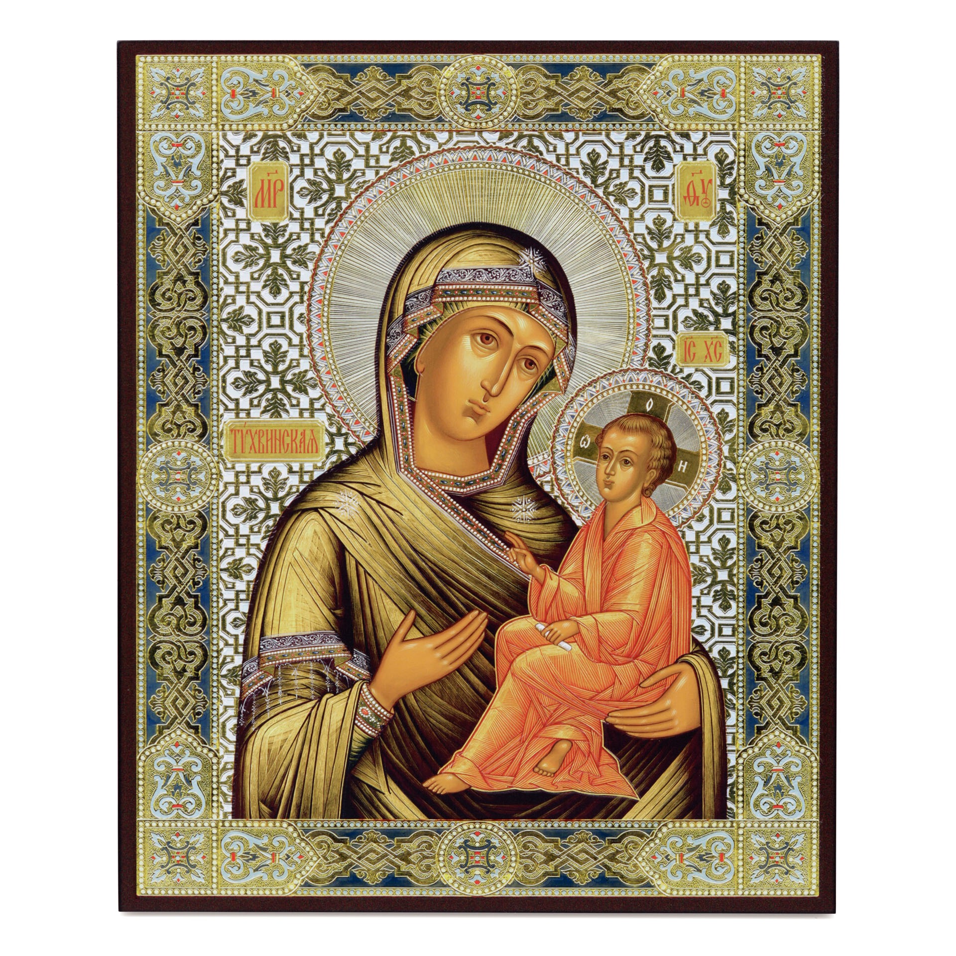 Икона на доске 33х40 объемная печать, лак Тихвинская БМ,