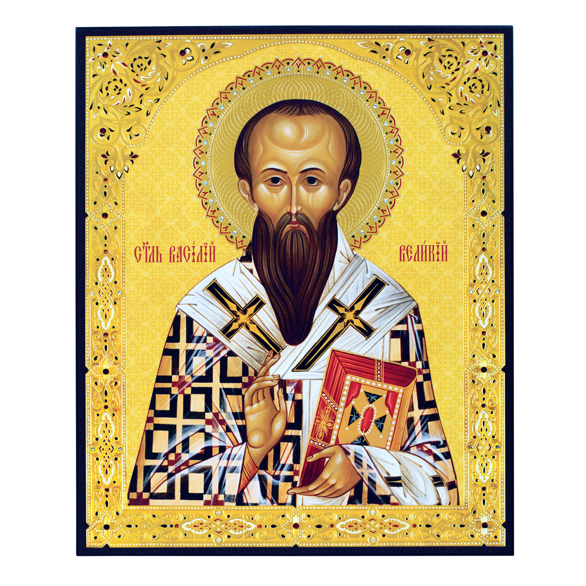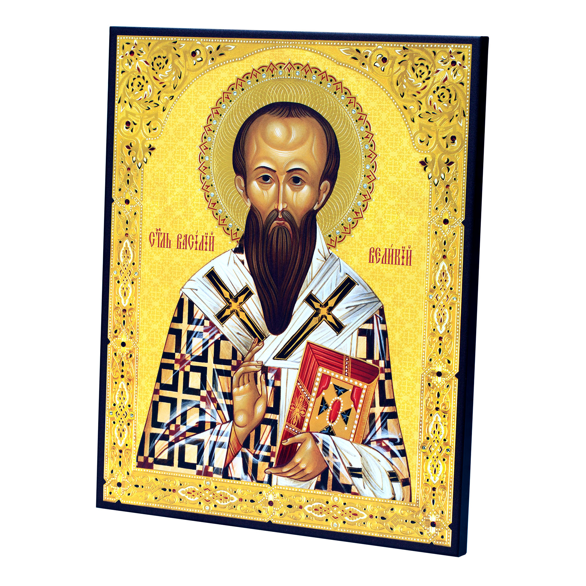 Икона на доске 33х40 объемная печать, лак Василий Великий