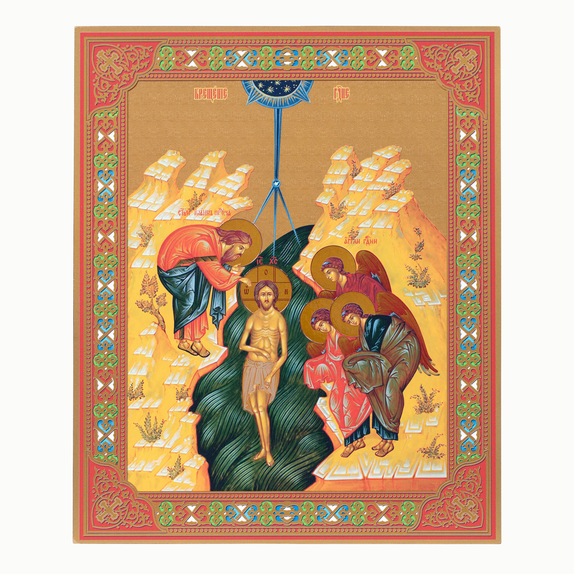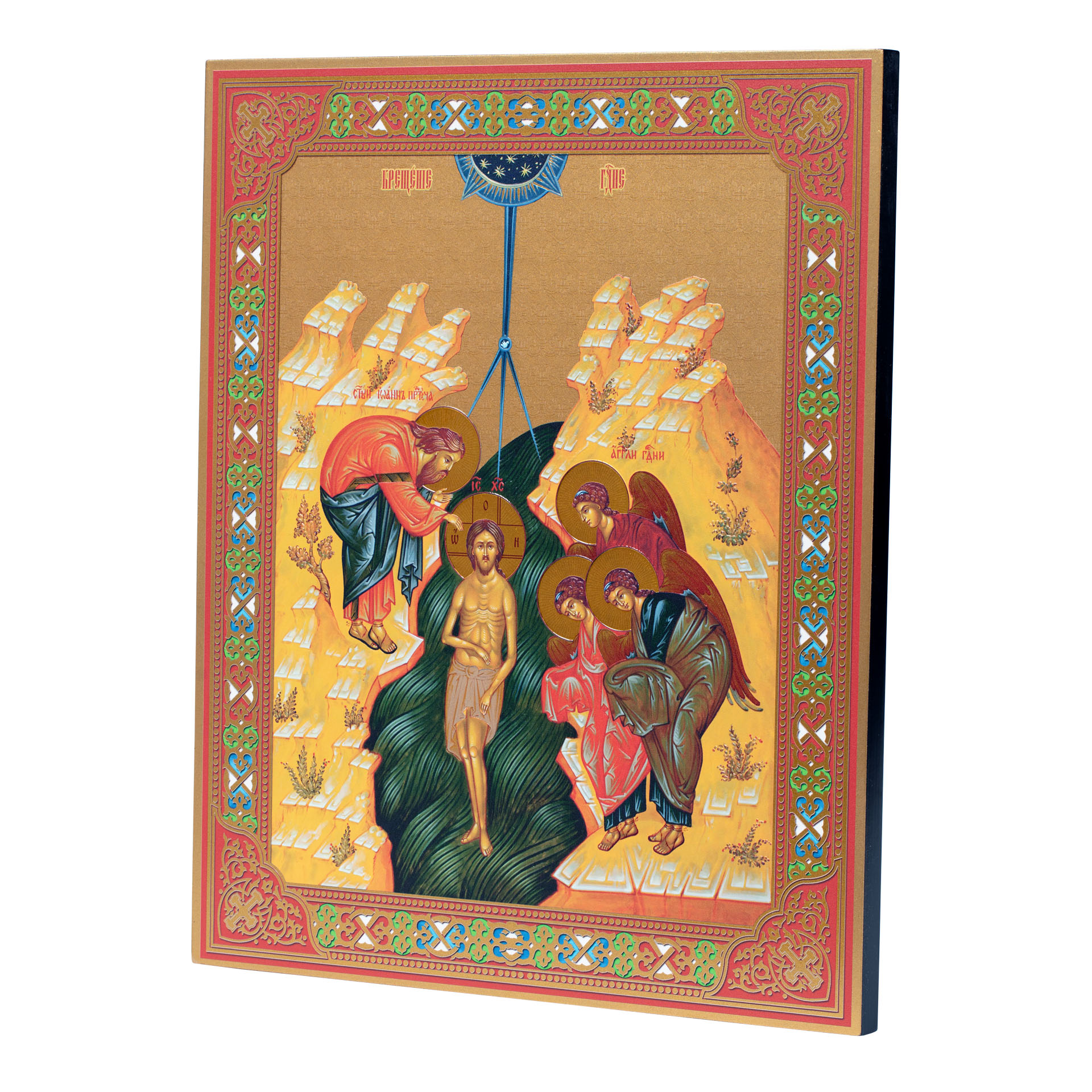 Икона на доске 33х40 золоченое покрытие, объёмная печать, лак Крещение Господне